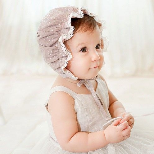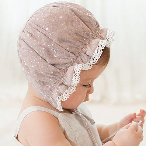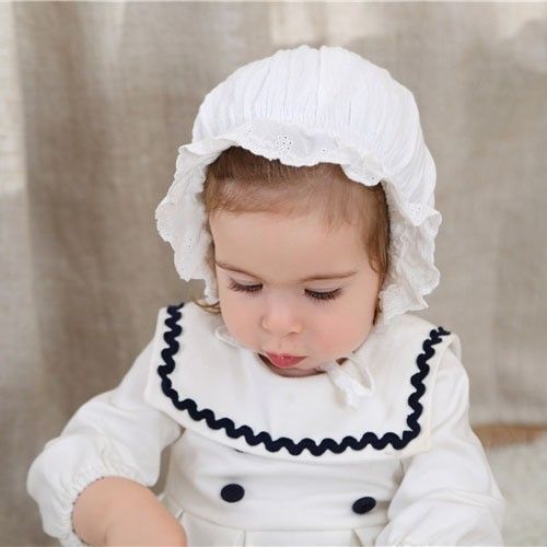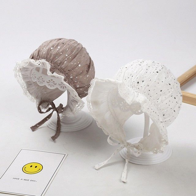 Topi Bonet Noni Bayi Perempuan Kupluk Ruffle Gelombang Renda - White Star