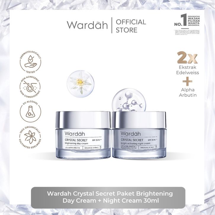 WARDAH CRYSTAL SECRET 1 PAKET DAY CREAM + NIGHT CREAM 30GR ORIGINAL OFFICIAL STORE