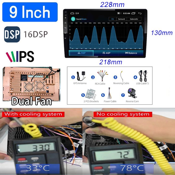 head unit android 9 inch Dual Kipas 8G+64G IPS Screen 7/9/10 Inch Android 14 Navigasi untuk Semua Double Din Mobil