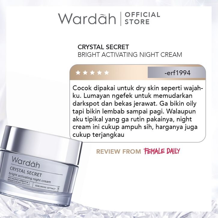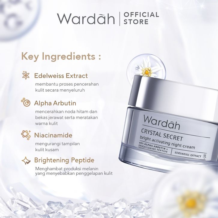 WARDAH CRYSTAL SECRET NIGHT CREAM ALPHA ARBUTIN + 5% NIACINAMIDE ORIGINAL OFFICIAL STORE