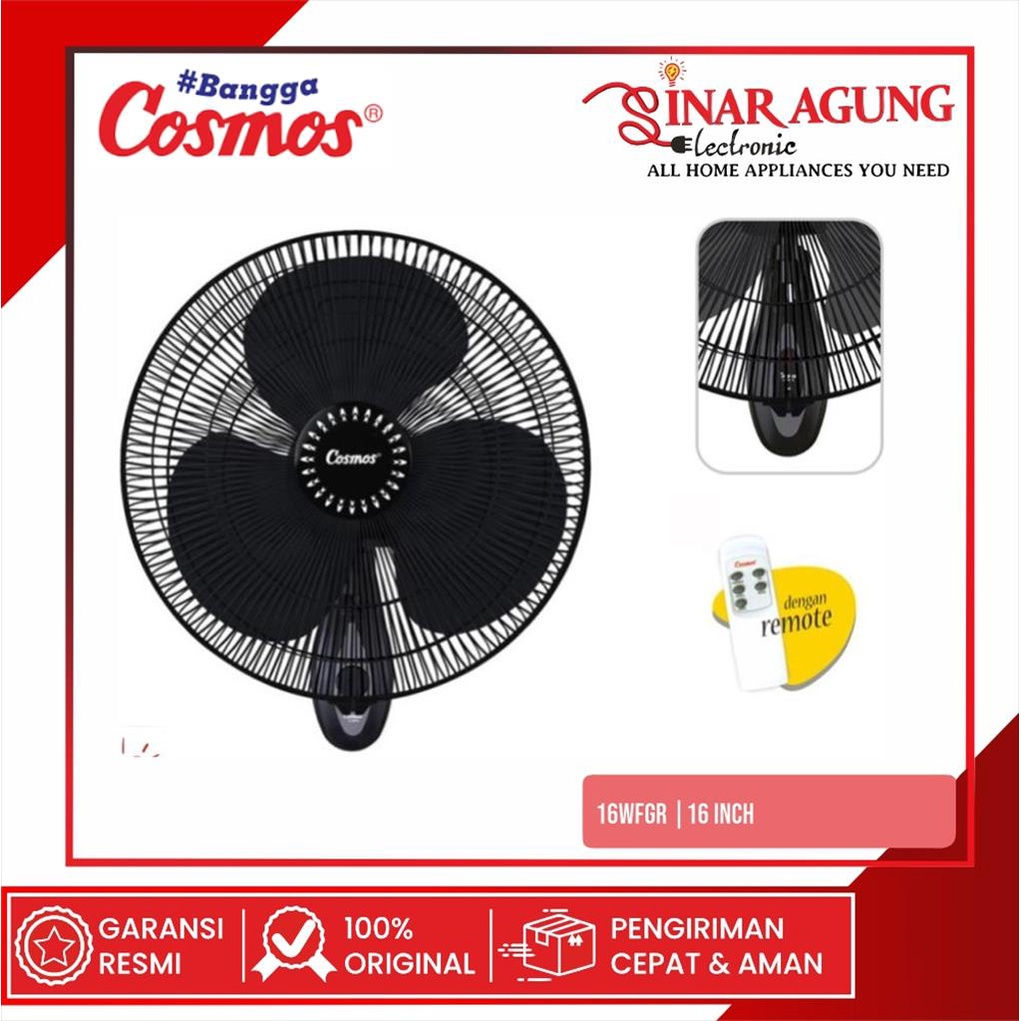 KIPAS ANGIN DINDING COSMOS REMOTE 16-WFGR ( 16 INCH ) ORIGINAL - COSMOS WALL FAN OFFICIAL STORE