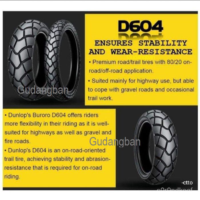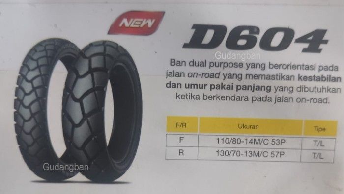 BAN MOTOR DUNLOP D604 130 70 13 DUAL PURPOSE SEMI TRAIL BAN LUAR MOTOR TUBELESS