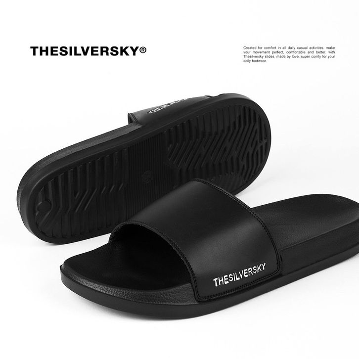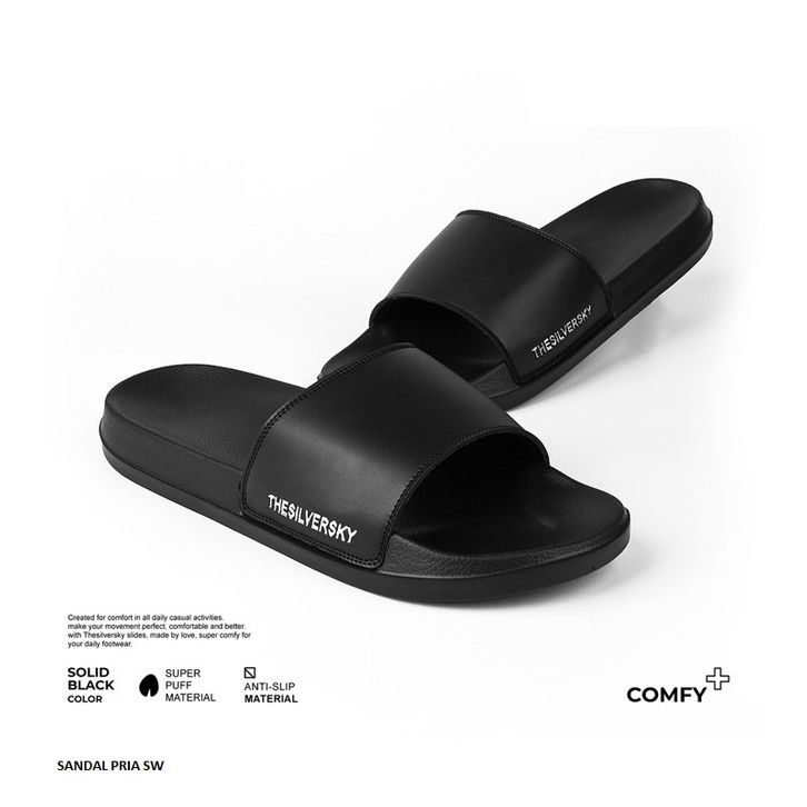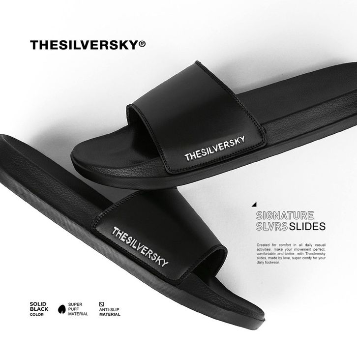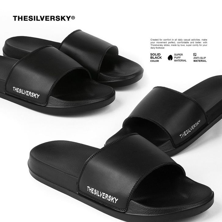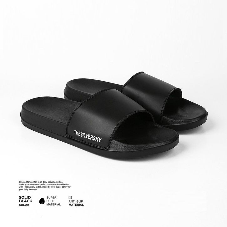 Sandal Slip On Pria Signature Side Emboss Metalic Premium Slide