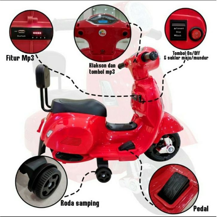 Mainan Anak Motor Aki Murah Vespa Mini Piaggio PMB M788 M399 M 788 399 M-788 Terlaris