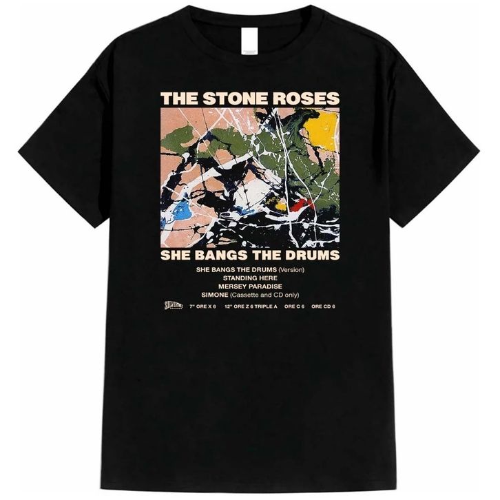 KAOS THE STONE ROSES SHE BANGS THE DRUMS HITAM PREMIUM TSHIRT PRIA WANITA