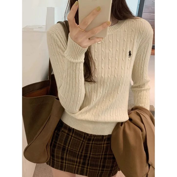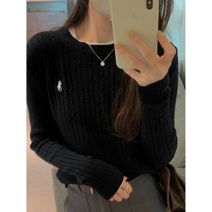 B05 Sweater Rajut wanita bordir olop/kerah bulat lengan panjang bahan halus dan tebal Termurah