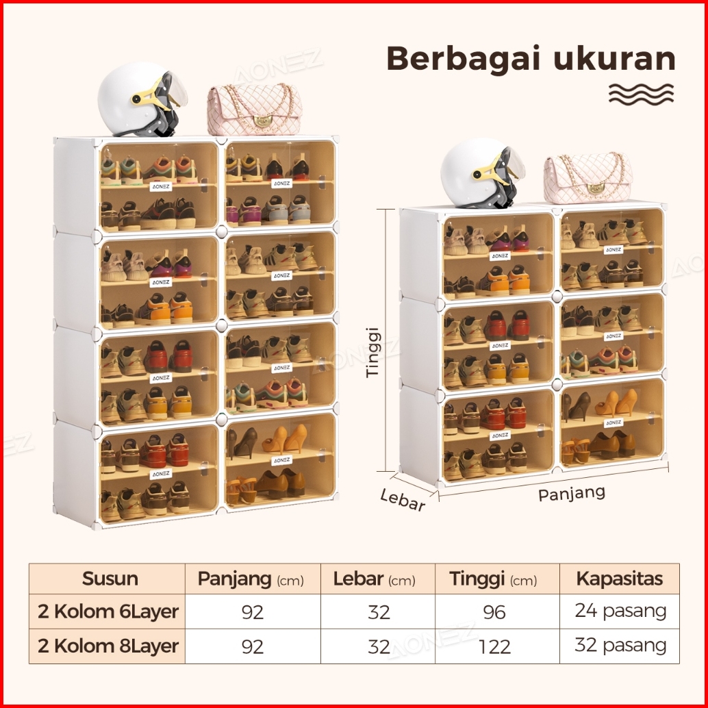 Homestorage Rak Sepatu Tertutup Kabinet Tas 2 Kolom 8 Layer Storage Penyimpanan Serbaguna Lemari Sepatu Anti Debu