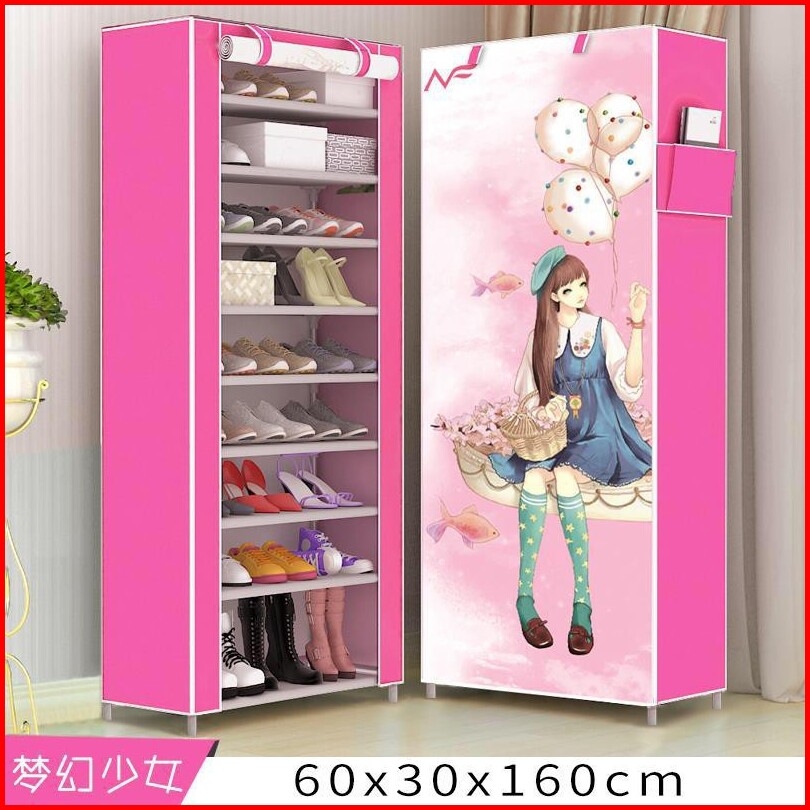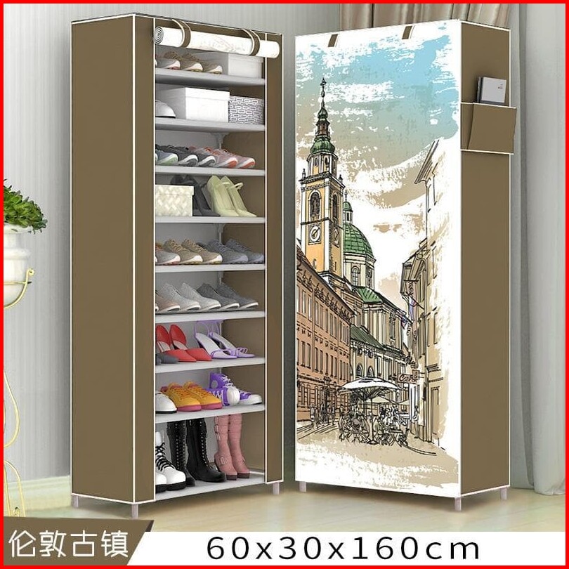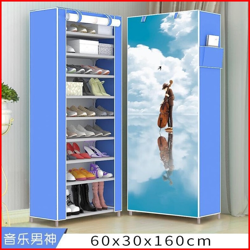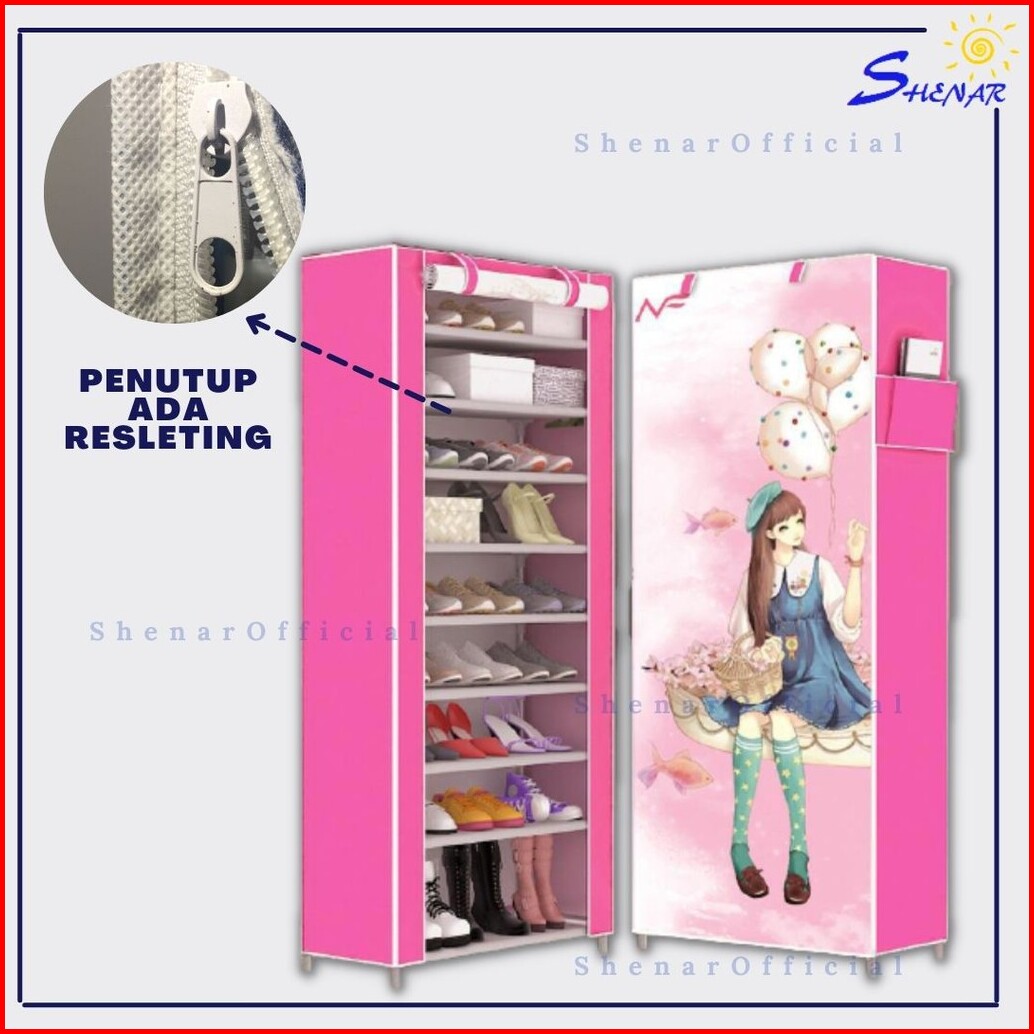 Rak Sepatu Kain 10 Susun 9 Rangka Tempat Sepatu Portable Shoe Rack Minimalis
