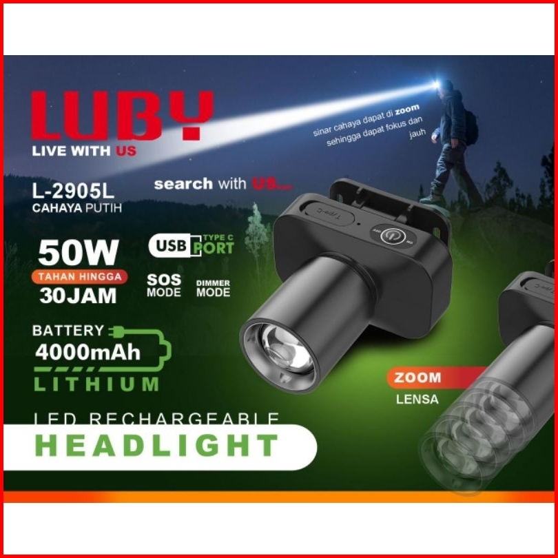 Senter Kepala Zoom Laser Luby Jarak Jauh Led 3 Mode Cahaya