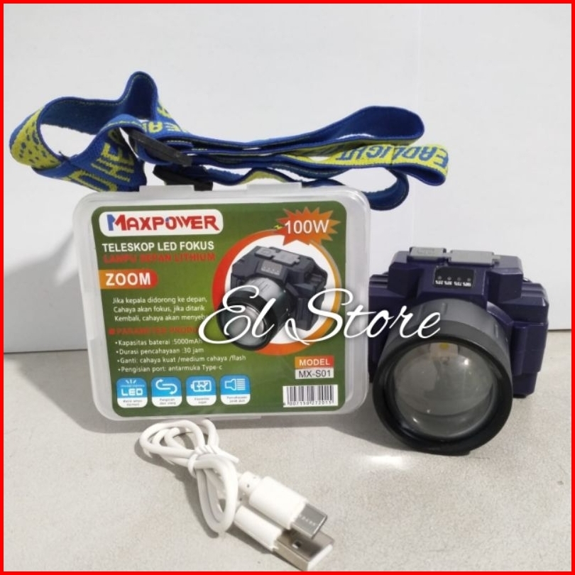 Senter Kepala Zoom Led Laser Maxpower 3 Mode Cahaya