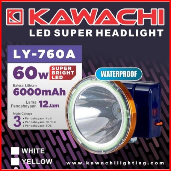 Headlamp Kawachi 60w Ly-760a Senter Kepala 60 Watt Waterproof Putih Kuning Ly 760a