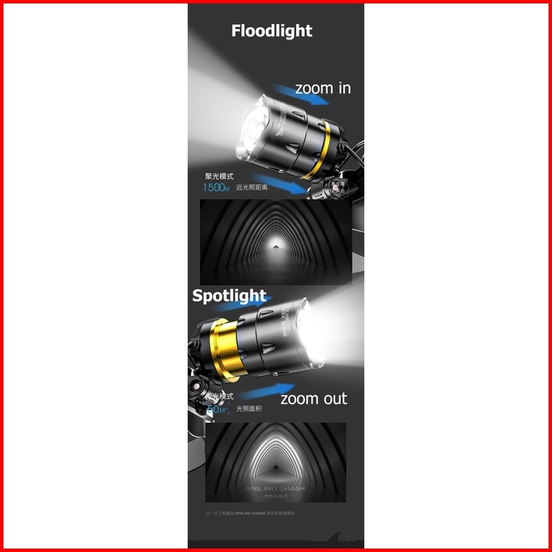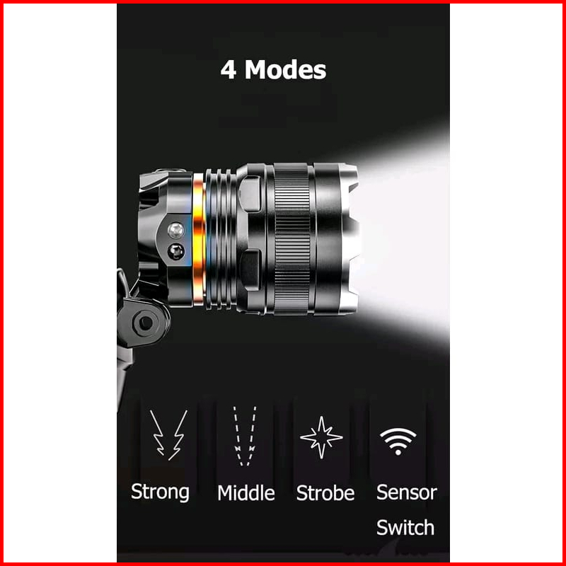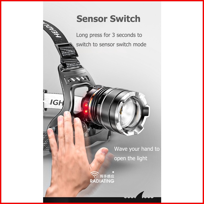 Senter Kepala Led Smiling Shark K255b - Bisa Zoom - Bisa Sensor Tangan - Bisa Di Cas - Super Terang