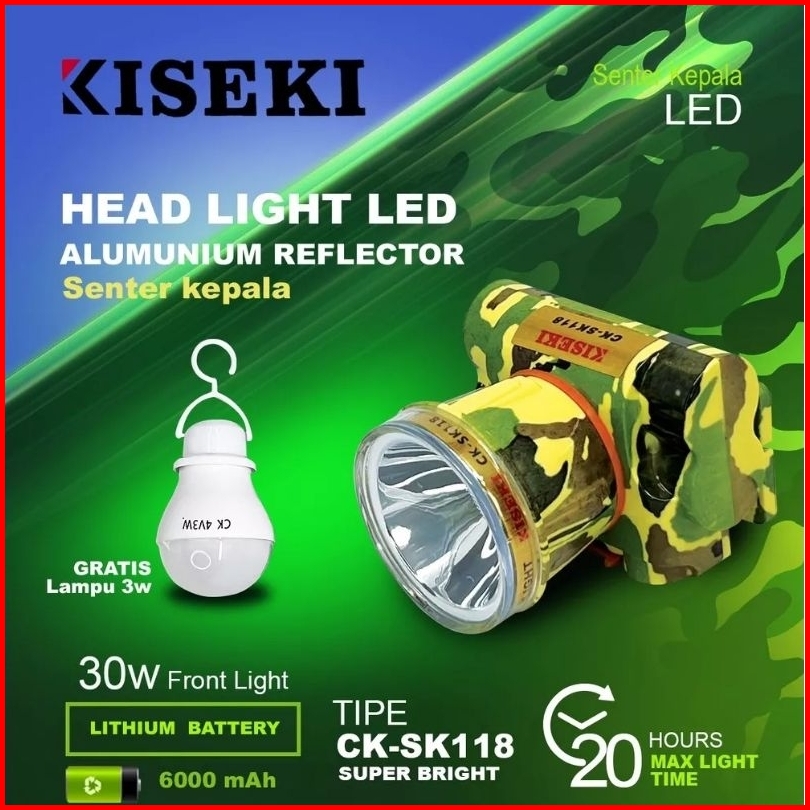 Senter Kepala Kiseki Ck-118 30watt Headlamp Super Bright Gratis Lampu
