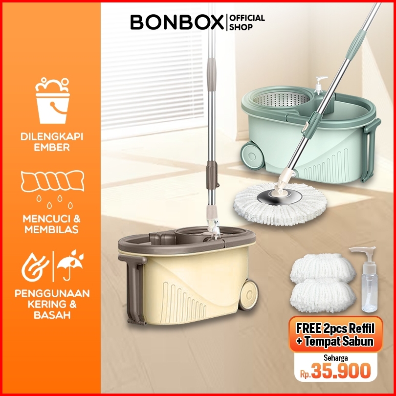 30kbonbox Alat Pel Lantai Kain Fiber Ember Spin Mop Mencuci Dan Membilas Alat Pembersih Lantai Bct704