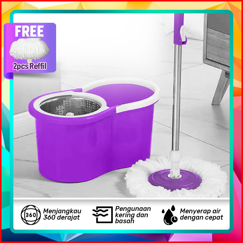 Alat Pel Lantai Ember 2 In 1 Kain Fiber Dengan Ember Spin Mop Mencuci Dan Membilas Alat Pembersih Lantai Bct3616b