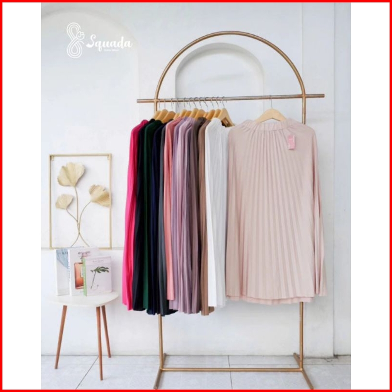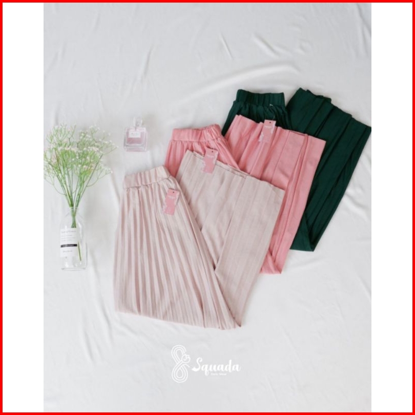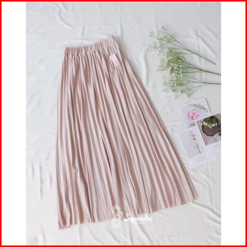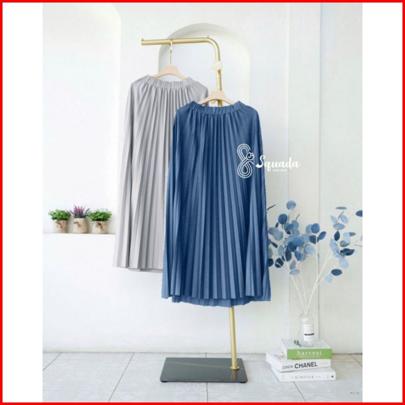 Squada - Rok Plisket Premium A Line Mayung 18 Warna Lengkap Hitam Putih Navy Pastel Coklat Milo Ijo Botol Fuschia Maroon