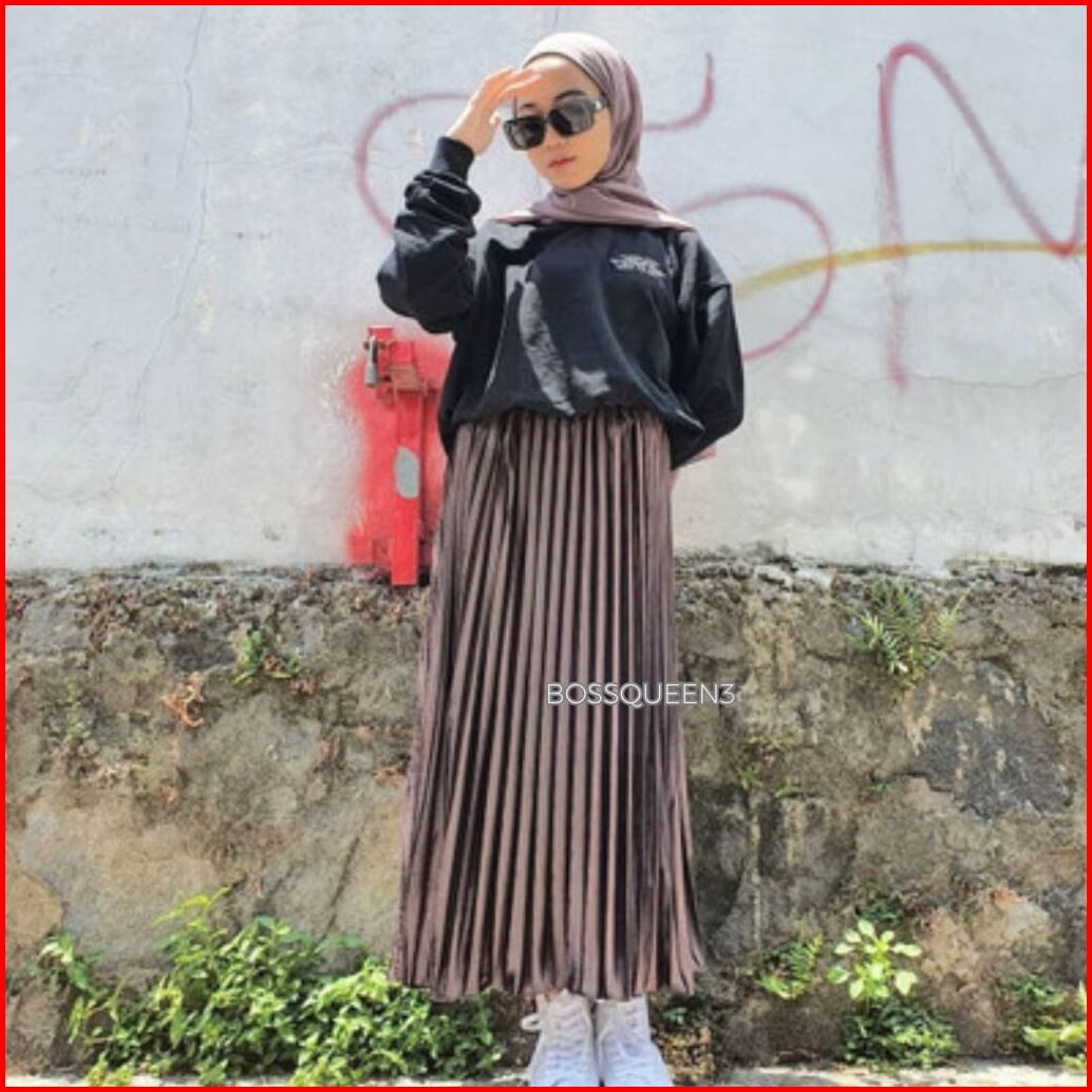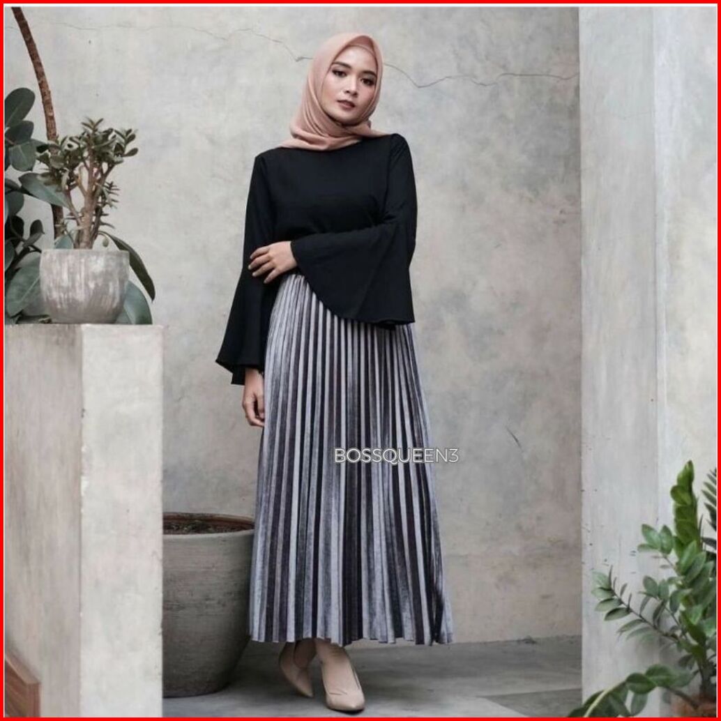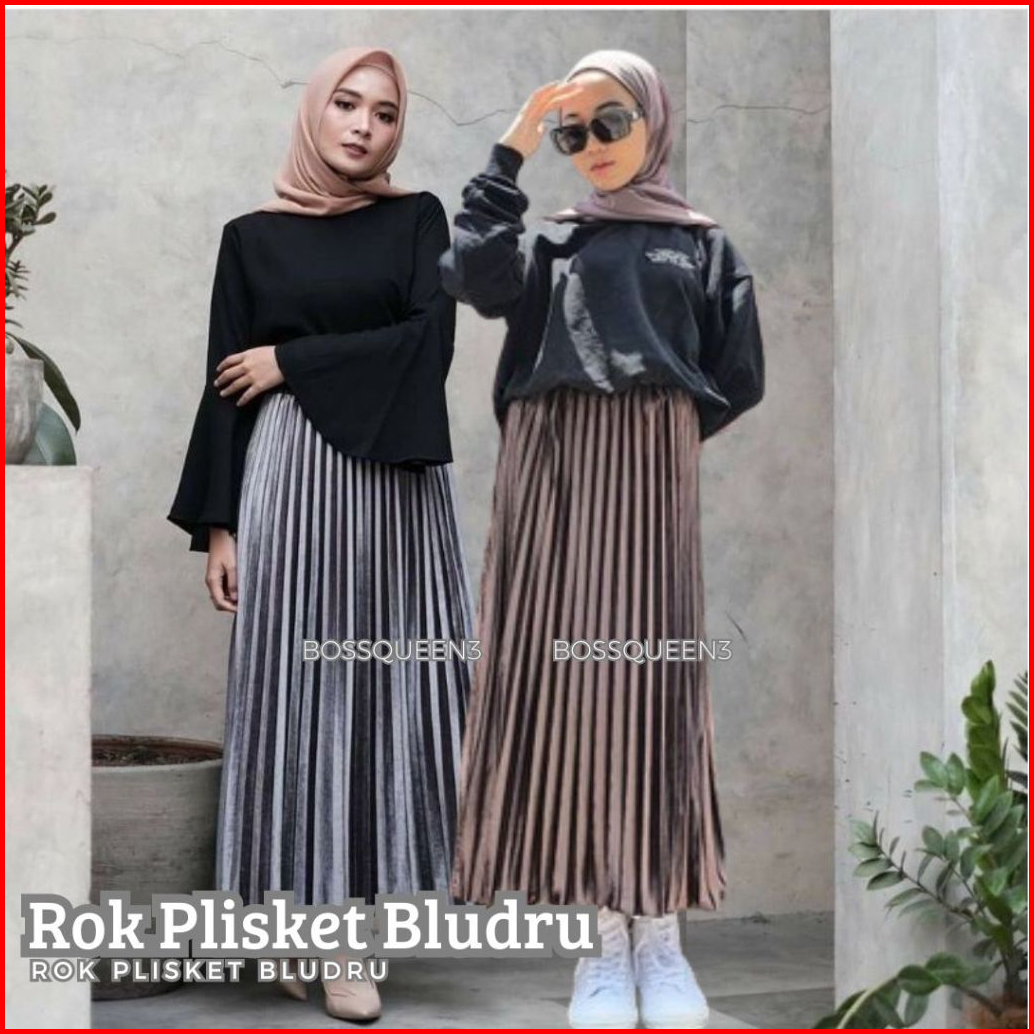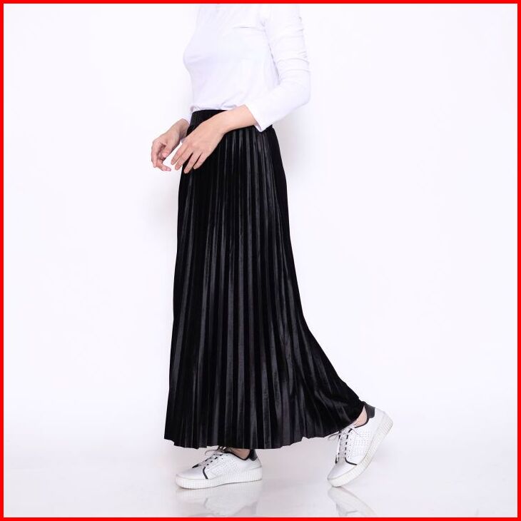 Rok Plisket Bludru Panjang Dewasa Premium Rok Bludru Velvet Premium