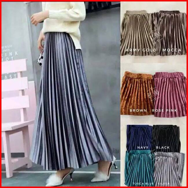 Rok Plisket Velvet Bludru Import Rok Plisket Bludru Import
