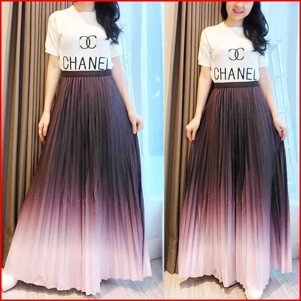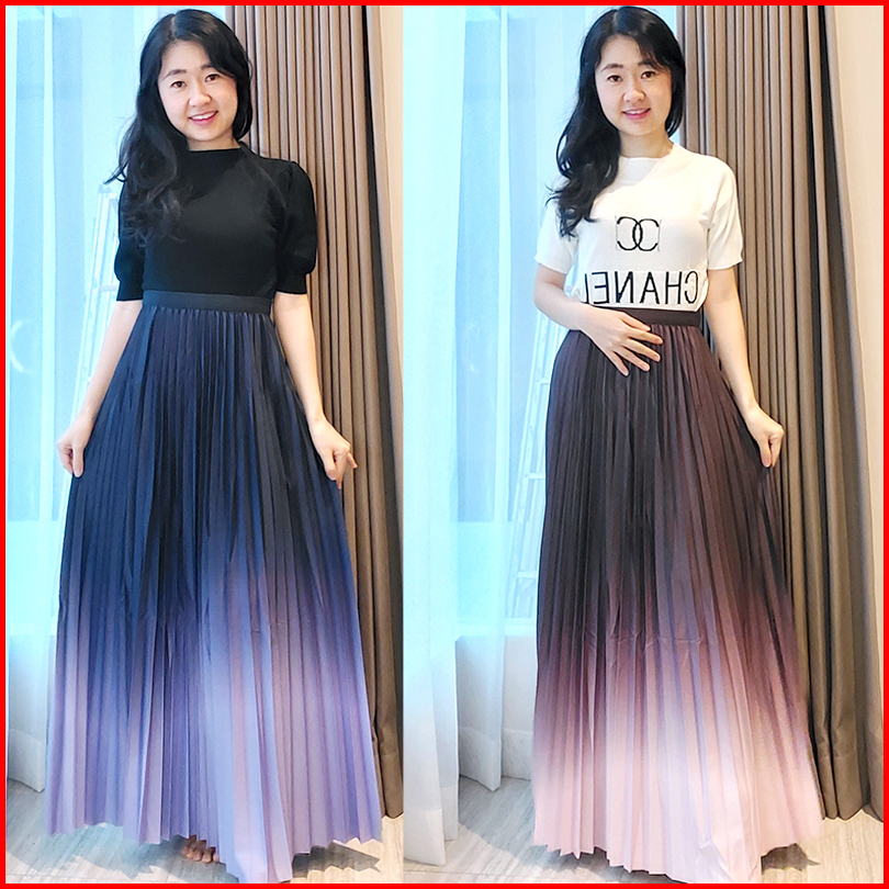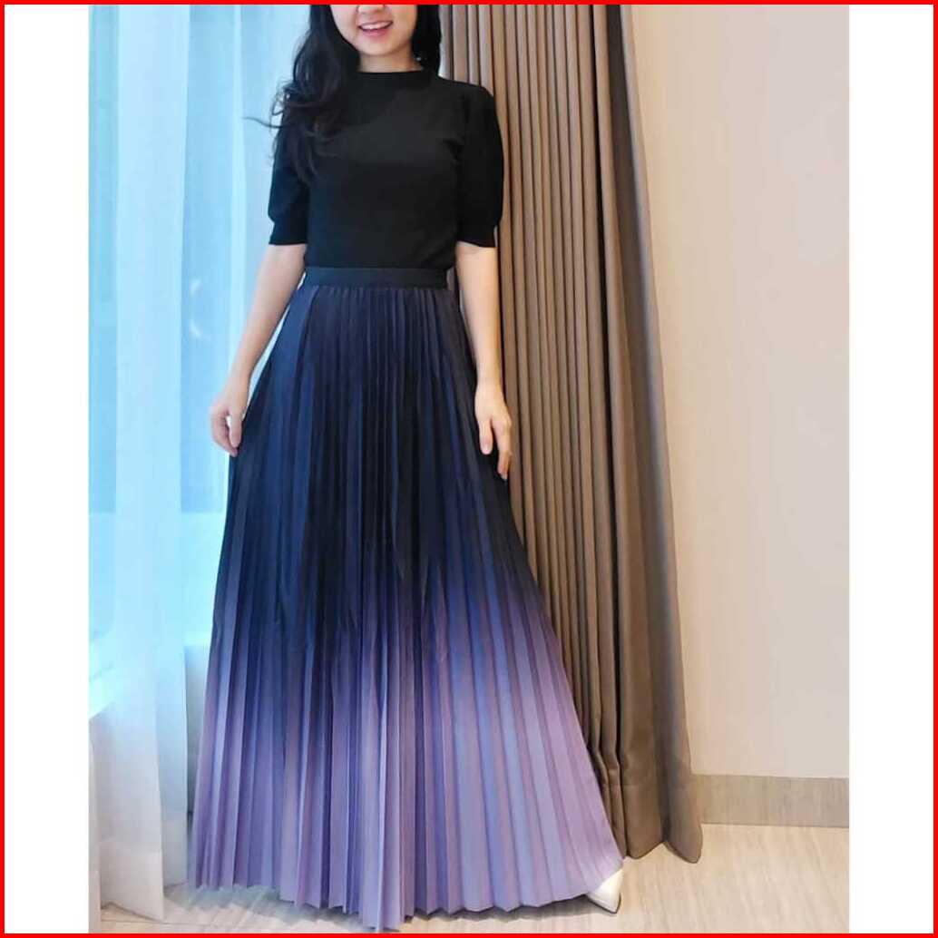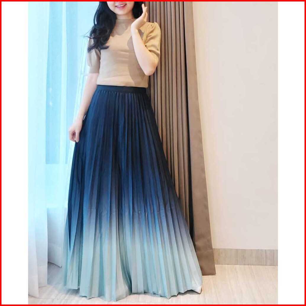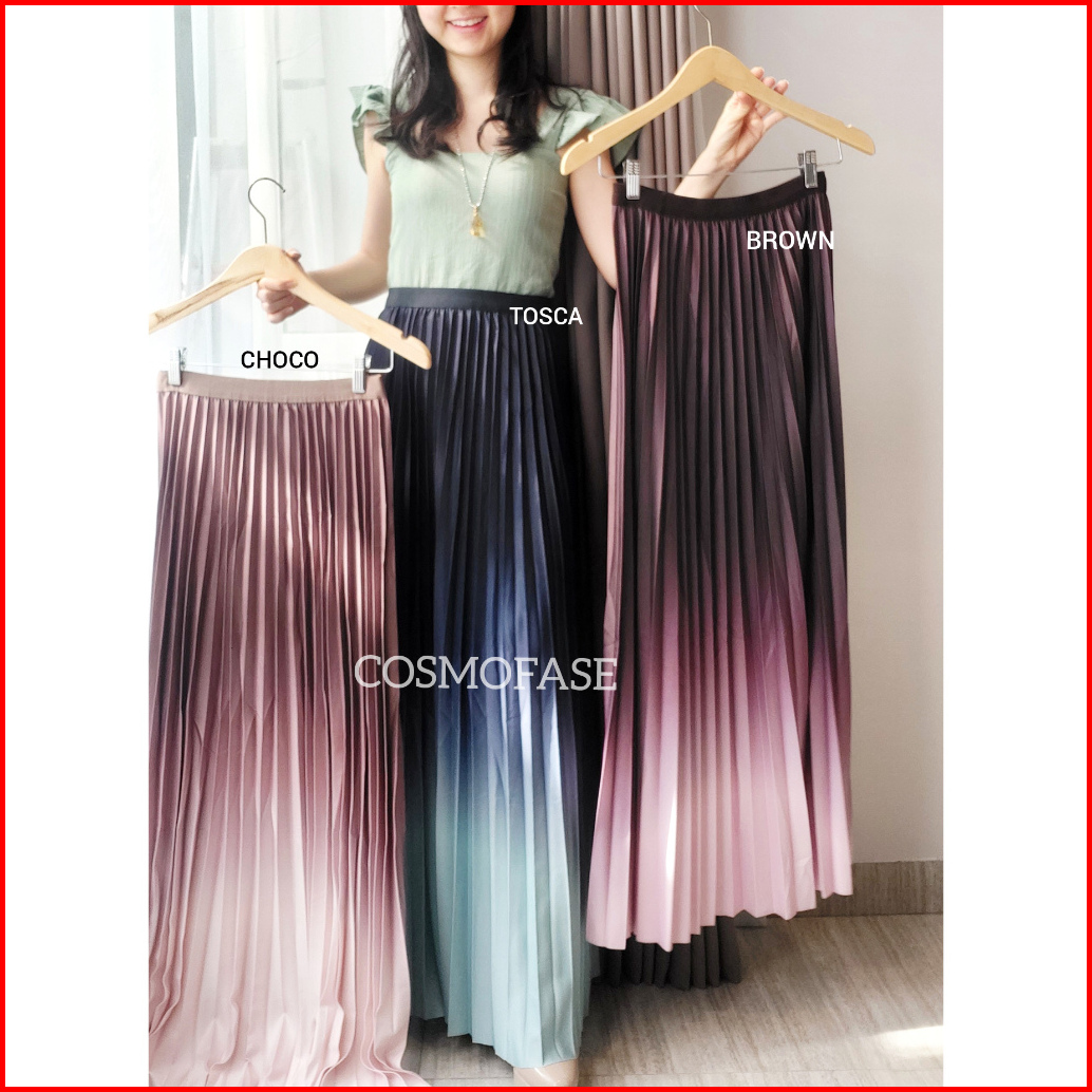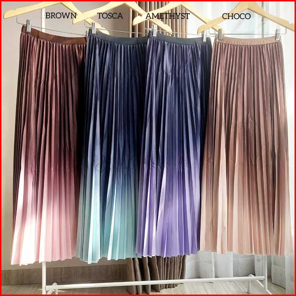 Gradation Plisket Skirt - Rok Plisket Premium Ombre Gradasi Import