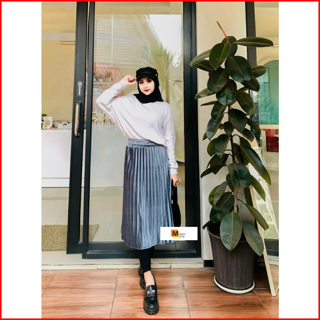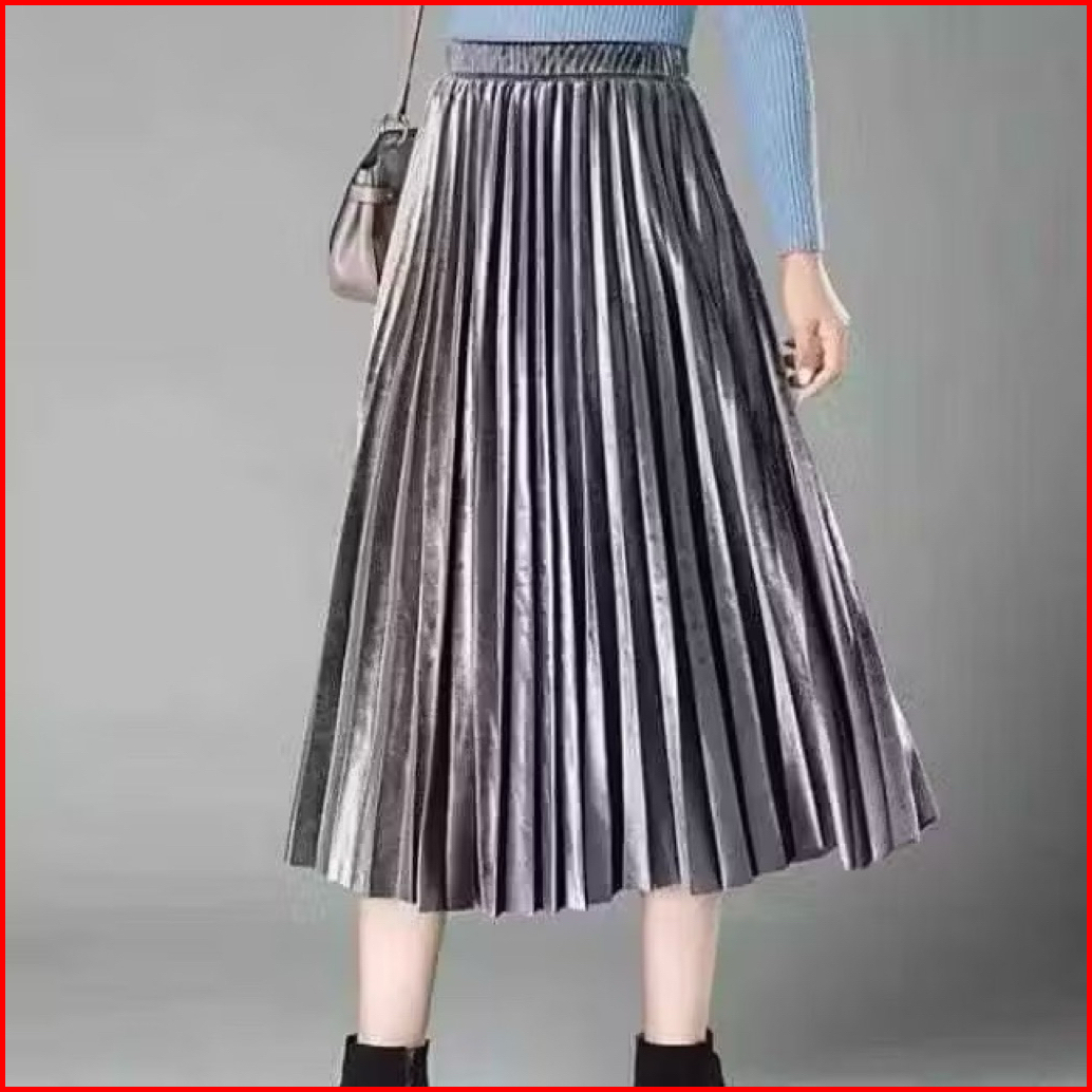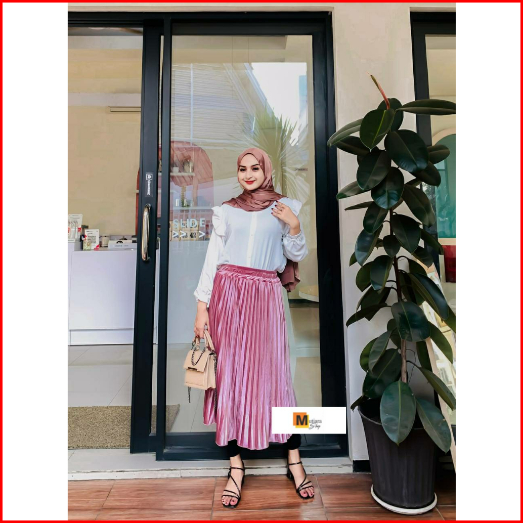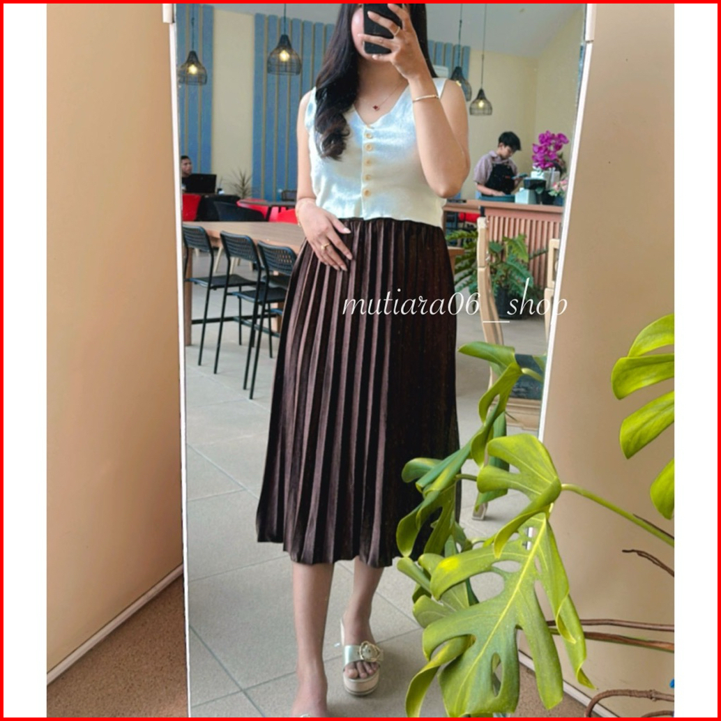 Rok Plisket Bludru Pendek 7 8 Velvet Premium Glossy