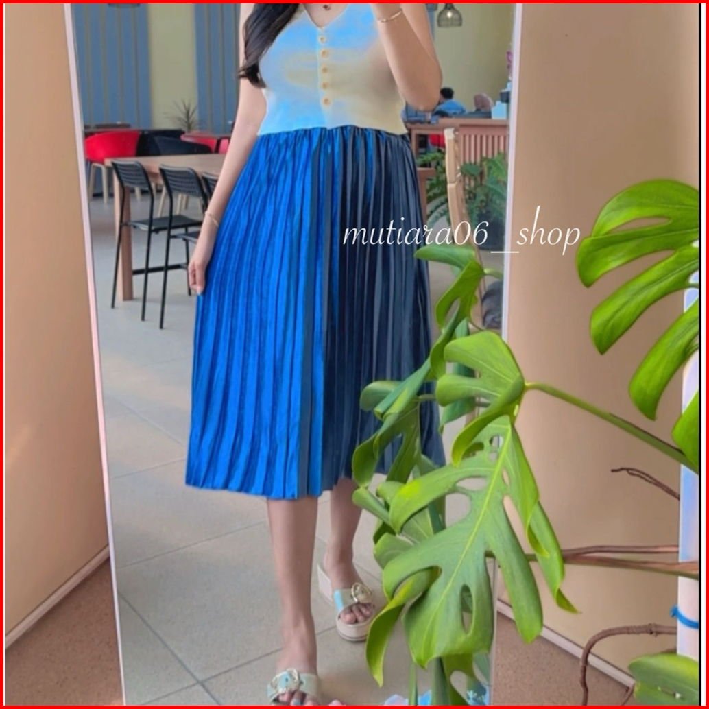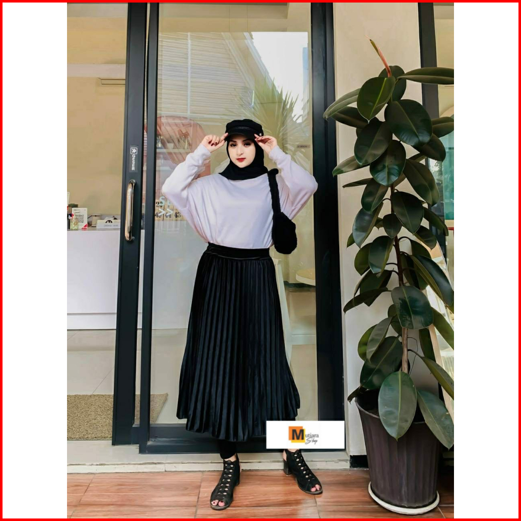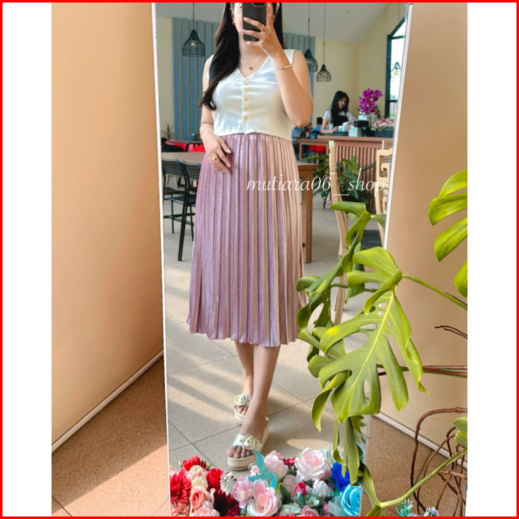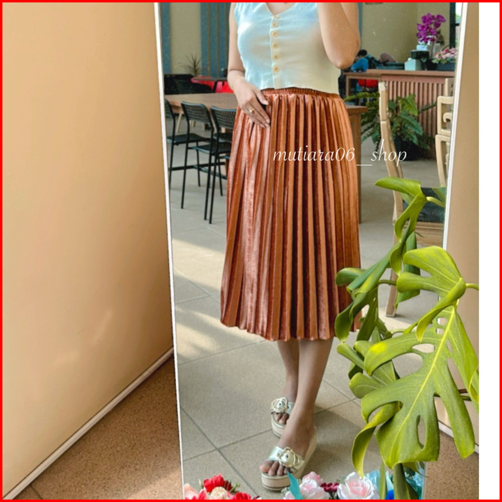 Rok Plisket Bludru Pendek 7 8 Velvet Premium Glossy