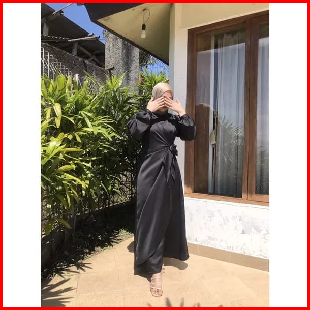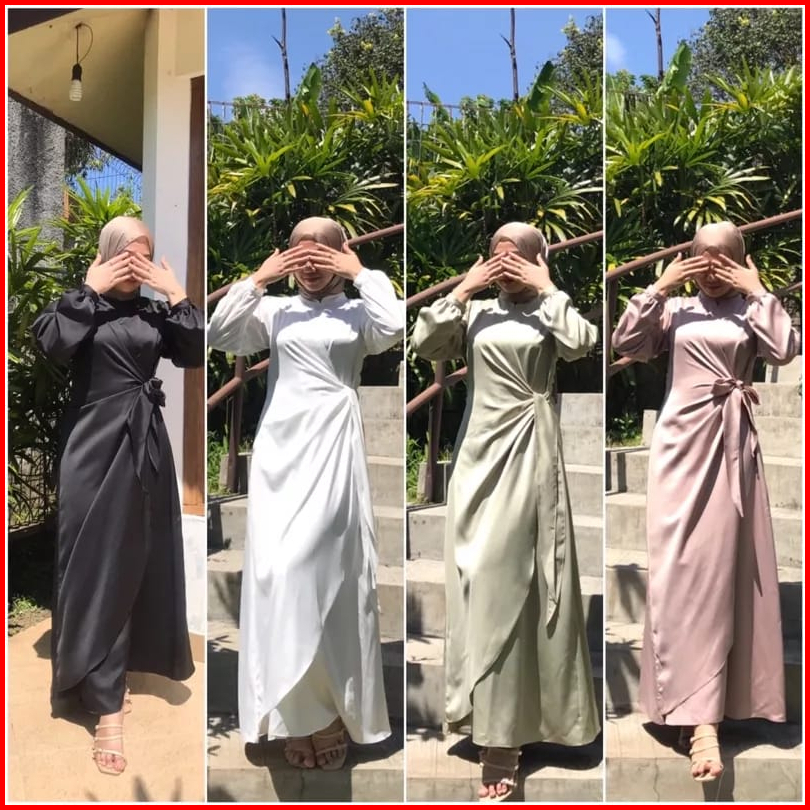 Dress Ayu Tali Samping Korea Muslim Satin Silk Bridesmaid Baju Kondangan Gamis Satin Wanita