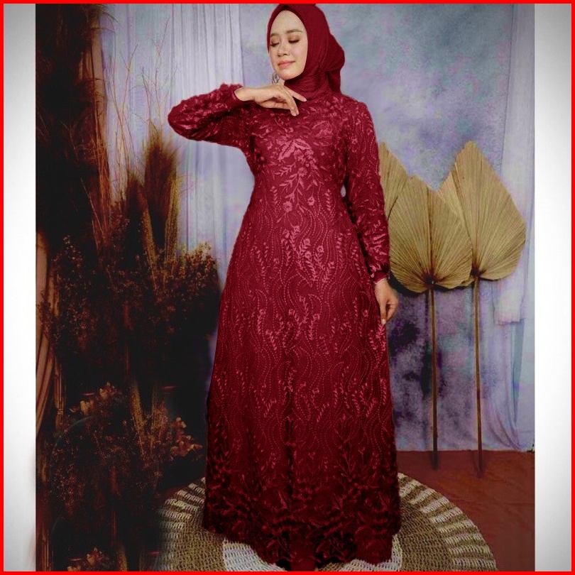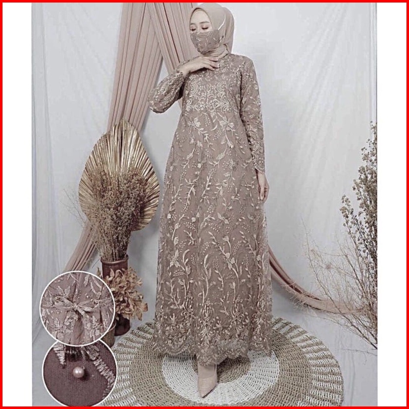 Gamis Busui Namira 2 Tile Full Brukat Mutiara Size S M L Xl Xxl 3l Dress Kondangan Gamis Brukat Tile Brukat Mutiara Gami