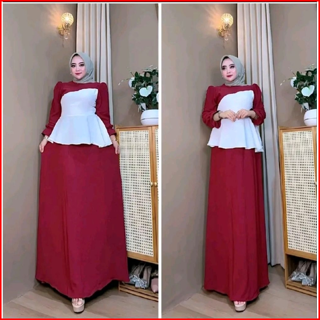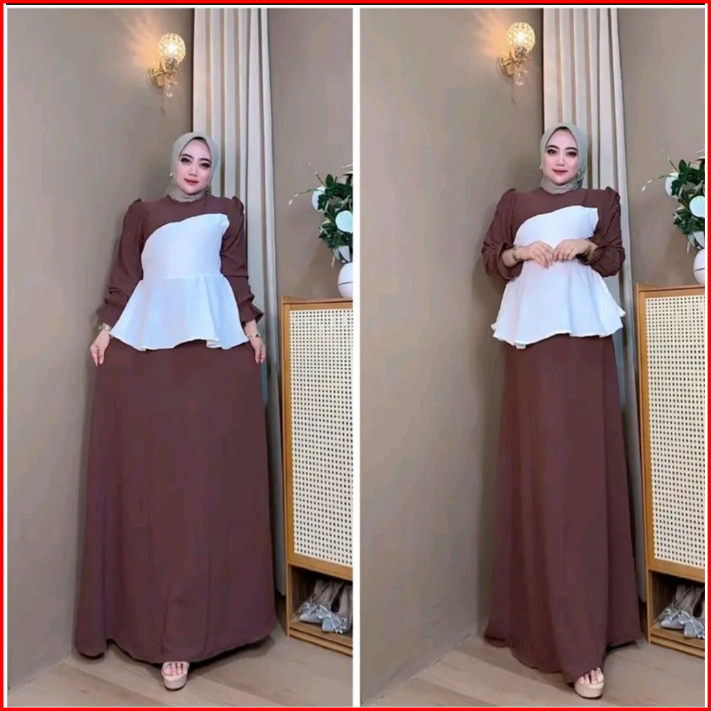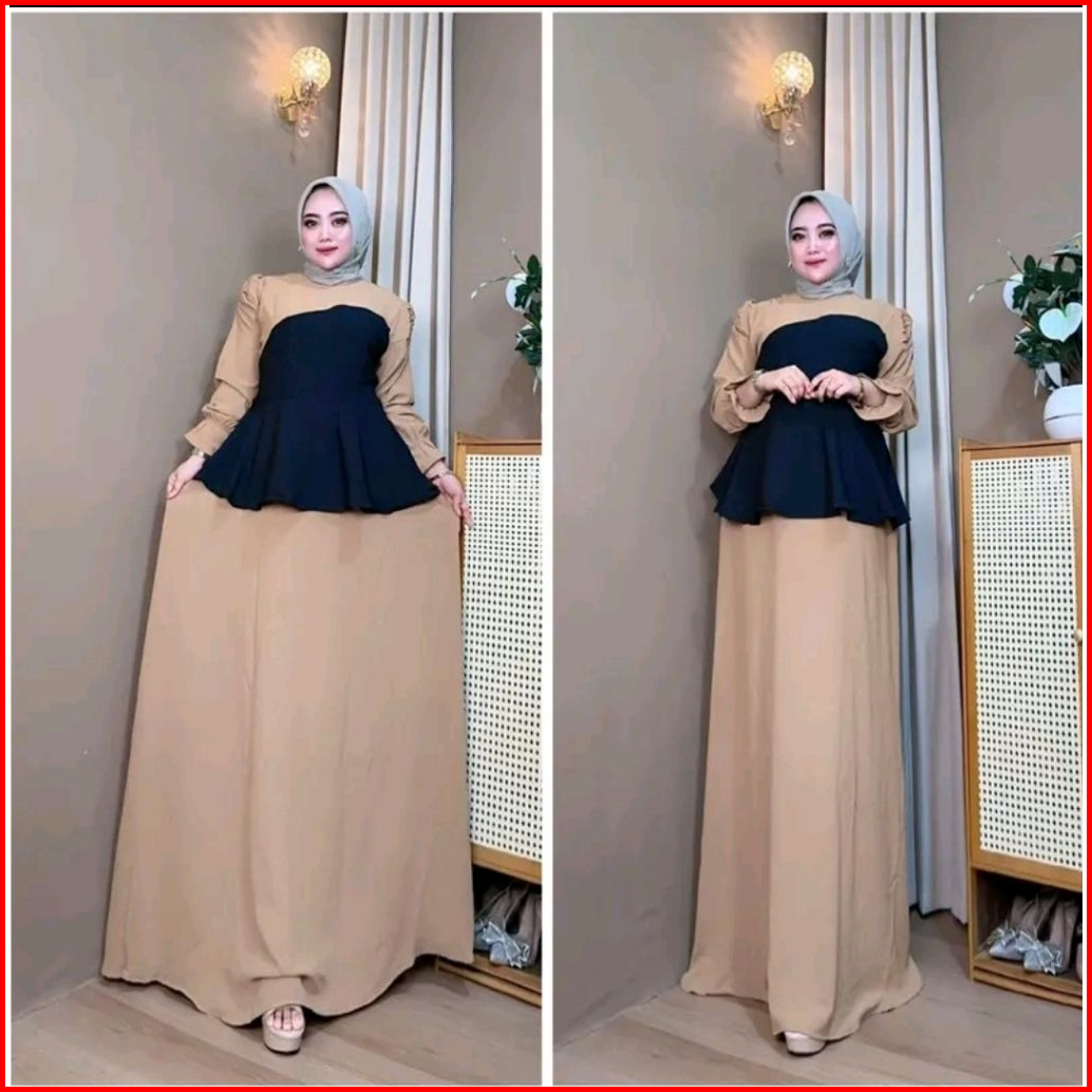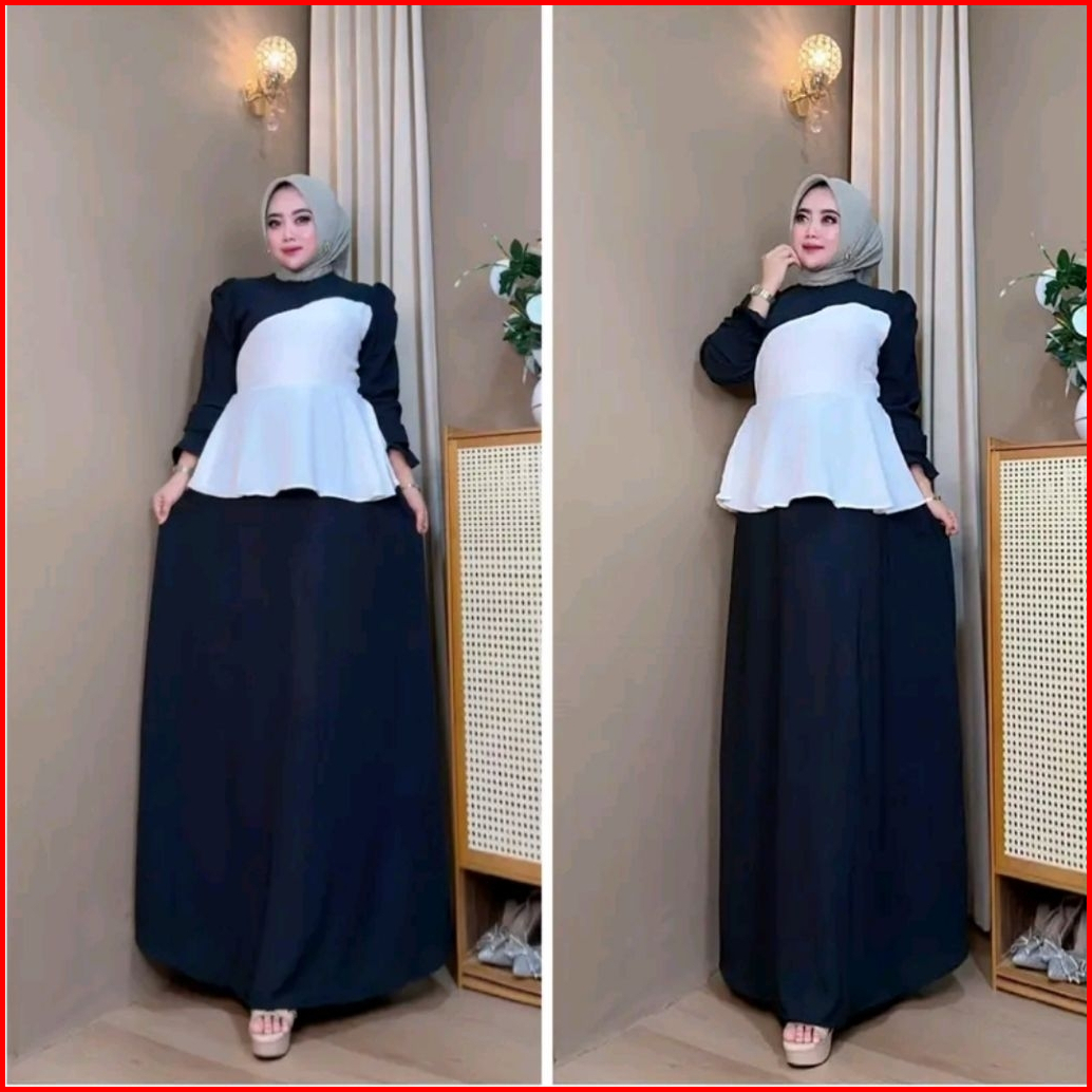 Danira Dress Gamis Polos Motif Kombinasi Warna - Gamis Muslimah Terbaru 2025 Crinkle Airflow