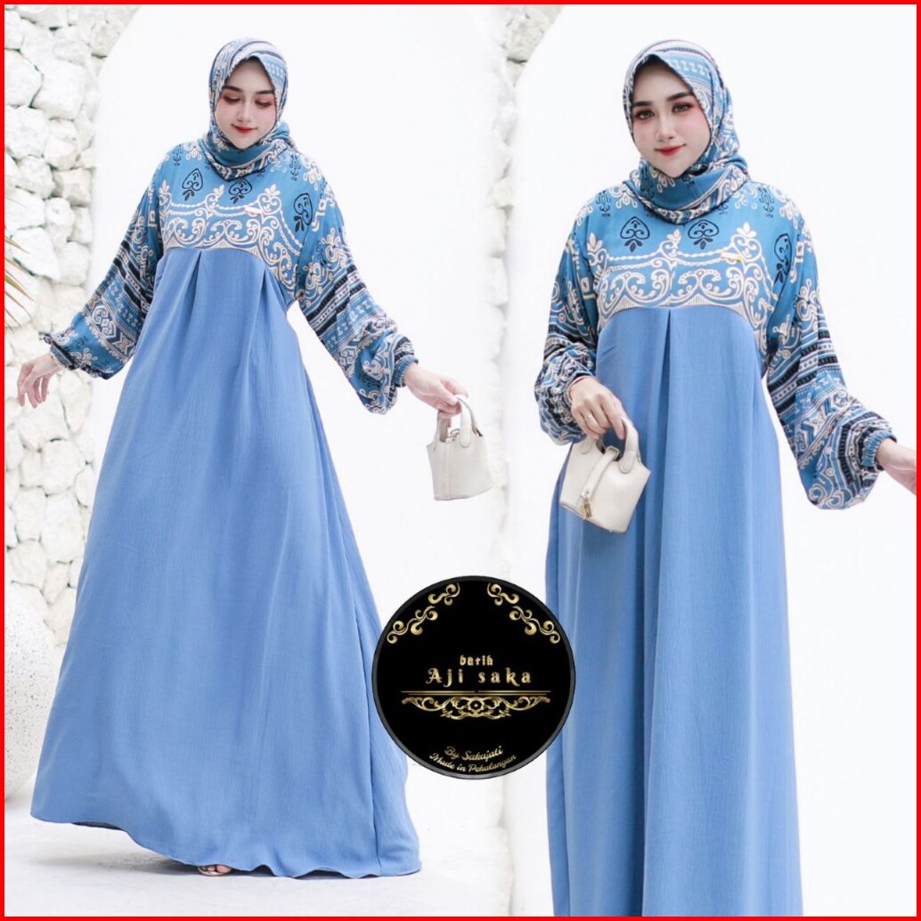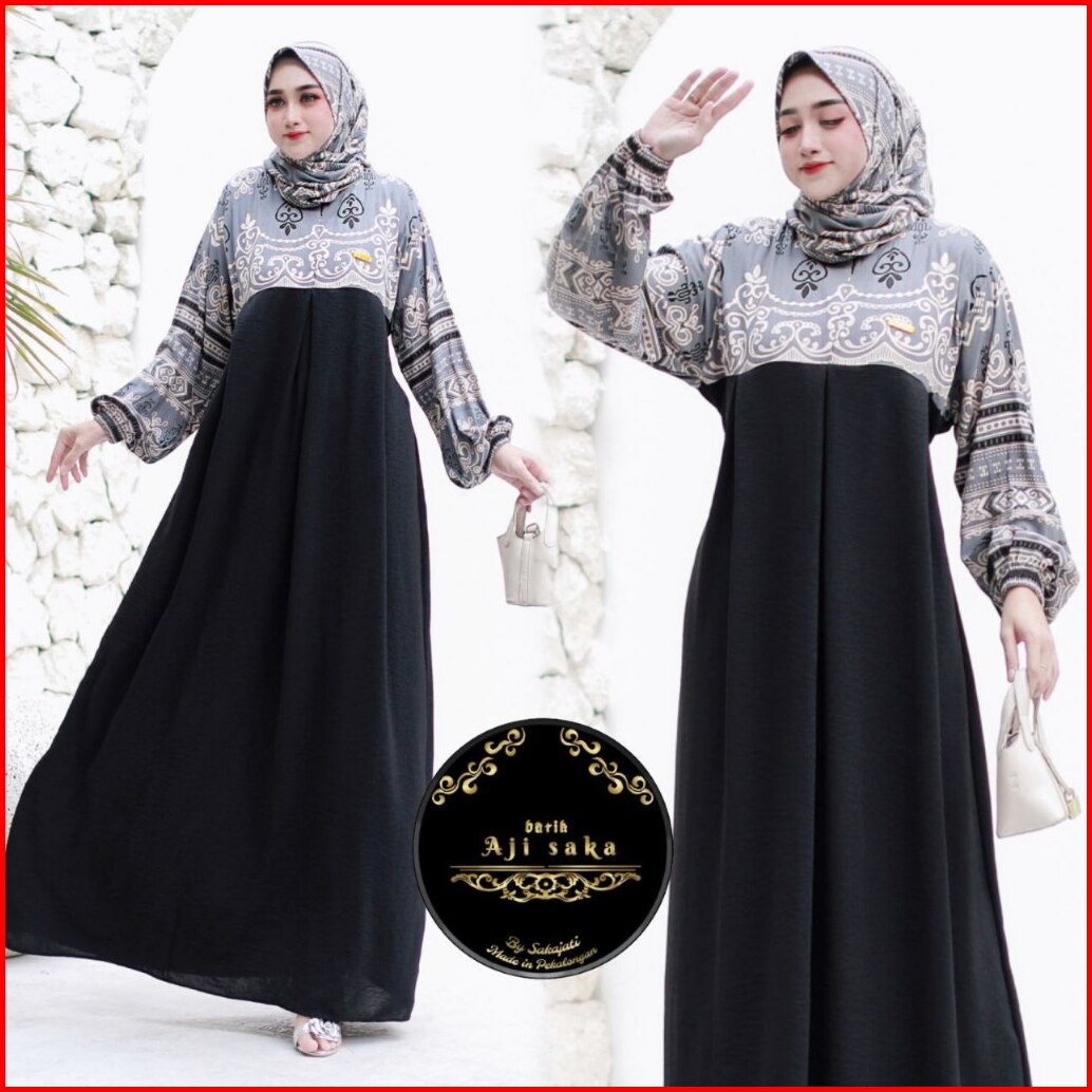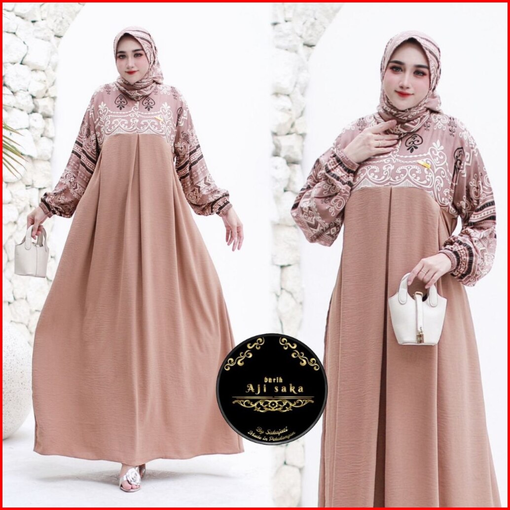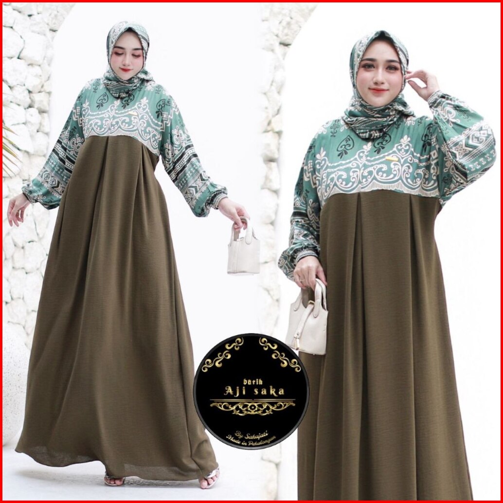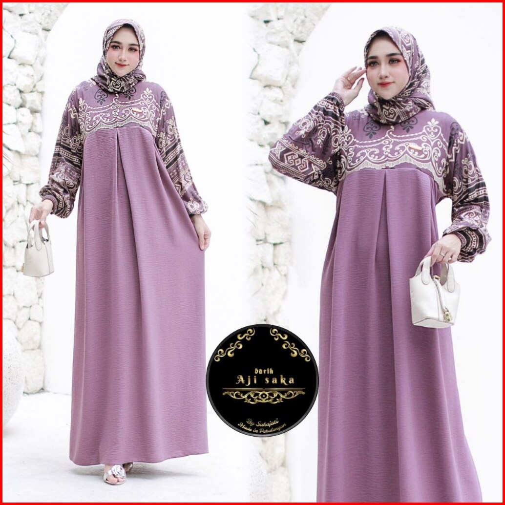 Gamis Fiola Set Hijab Lebaran Bahan Cringkel Airflow Adem Halus Tebal Nyaman Resleting Depan Busui Ld 120cm Pb 138cm Ter