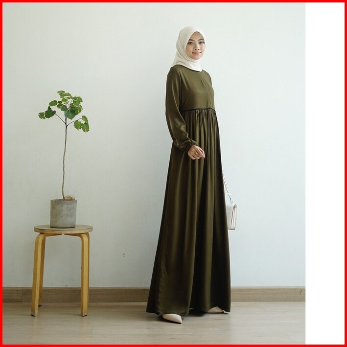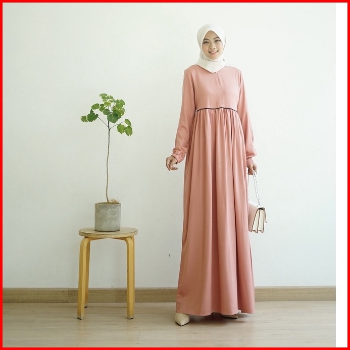 Le Khari Dress Aira Basic Gamis Polos Rayon Tebal Adem Homedress Twill Busui Gamis Rayon