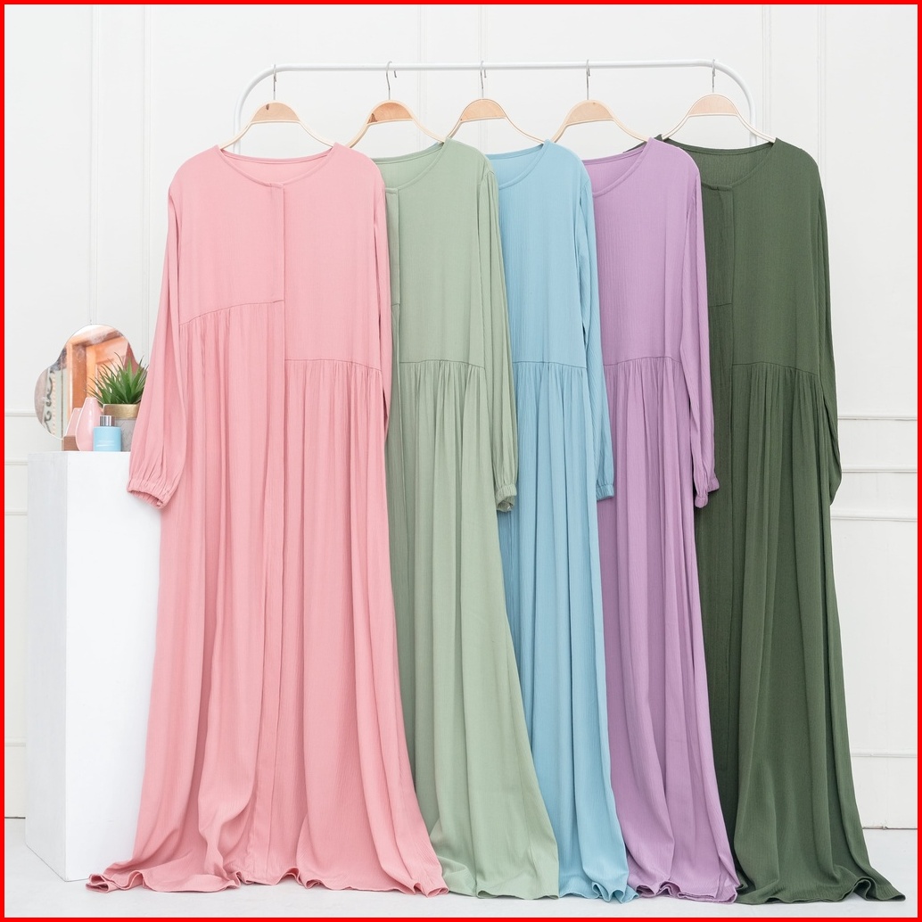 Le Khari Gamis Polos Aara Basic Homedress Rayon Crinkle Gamis Busui Size S-xl