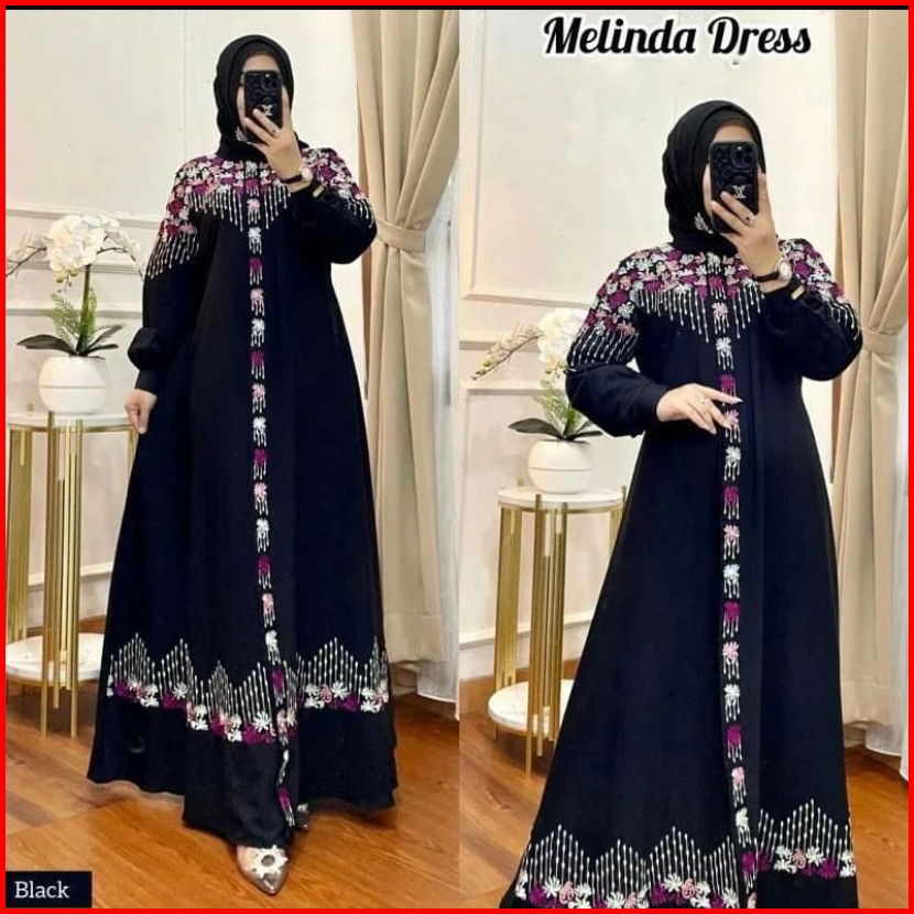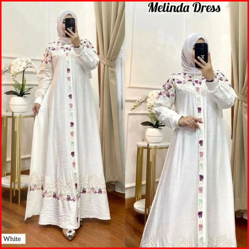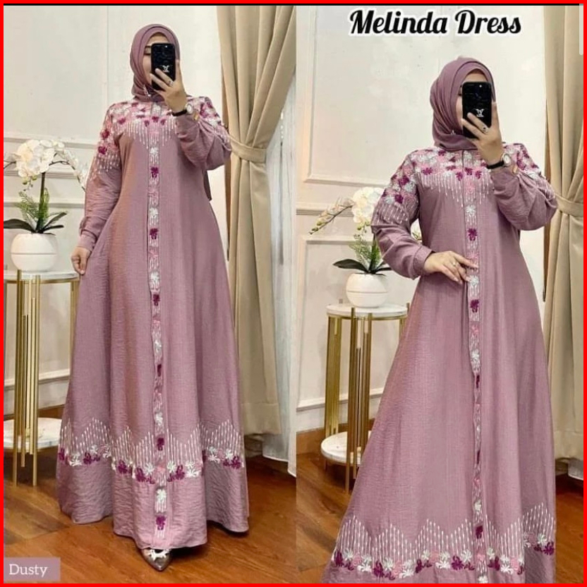 Melinda Dress Crinkle Airflow Premium Gamis Kringkel Kombinasi Bordir Gamis Terbaru Elegan Simple Mewah Gamis Bordir Ter