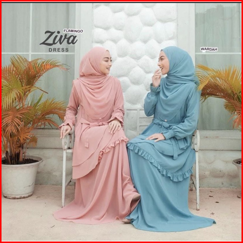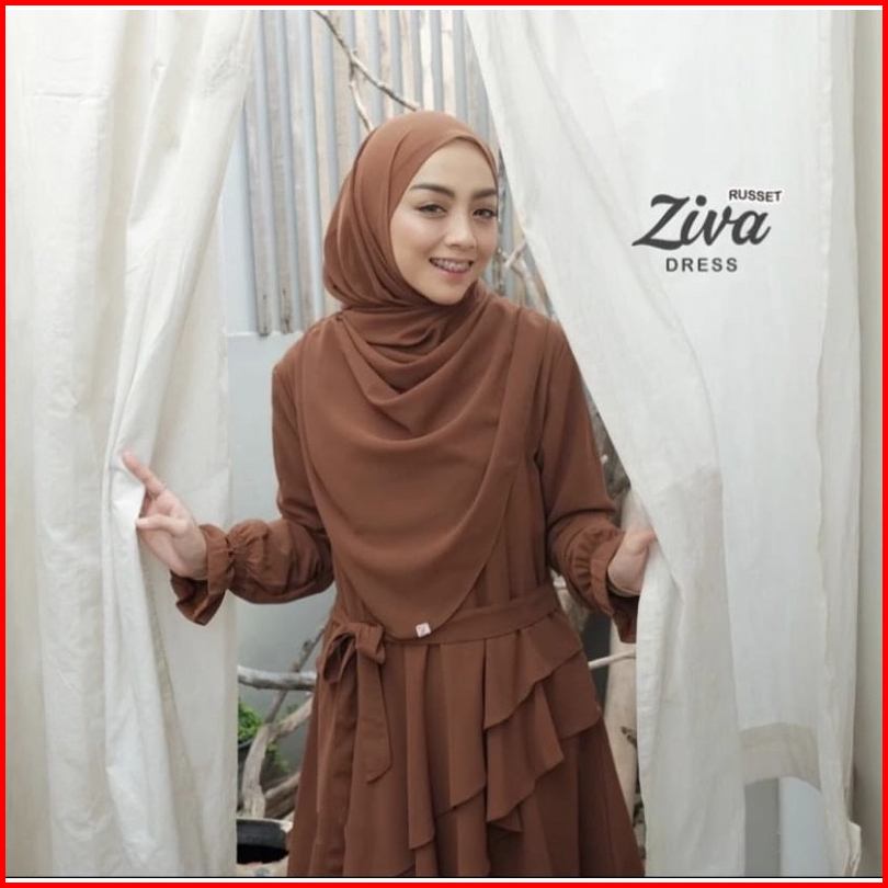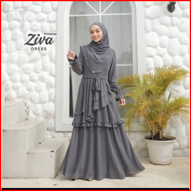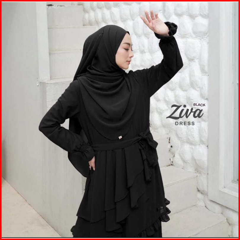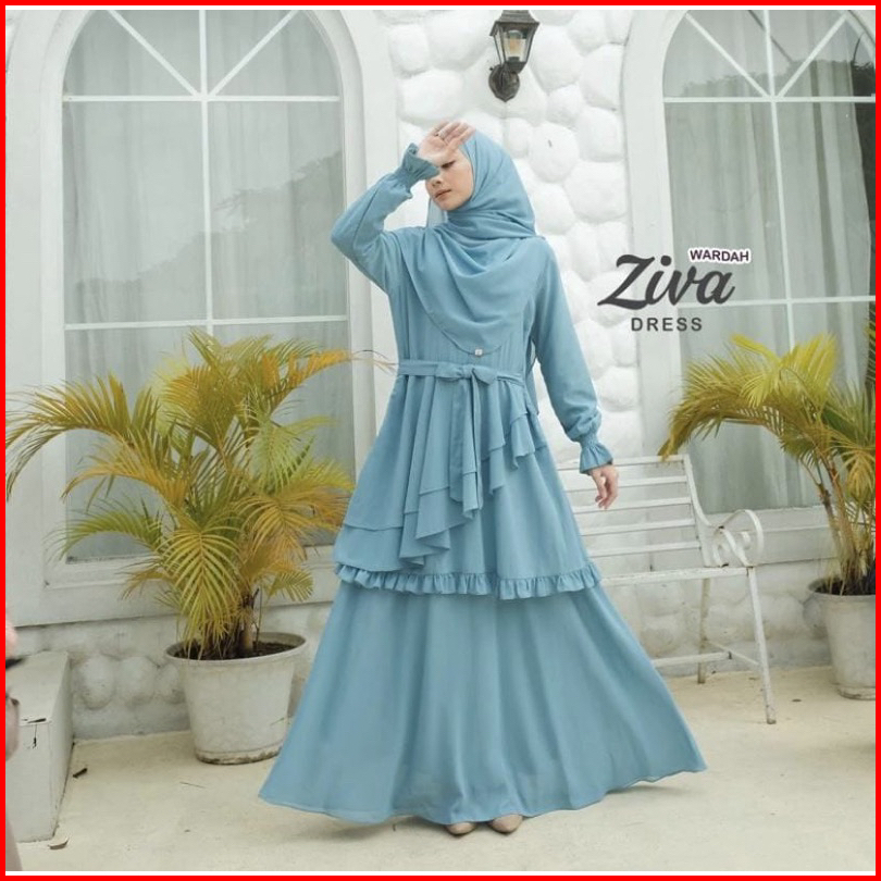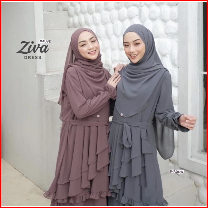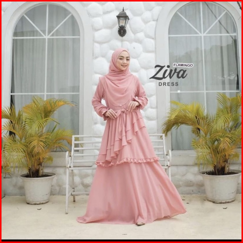 Ziva Dress Gamis Ceruty Model Terbaru 2023 Gamis Lebaran Pesta Kondangan Busui Full Puring
