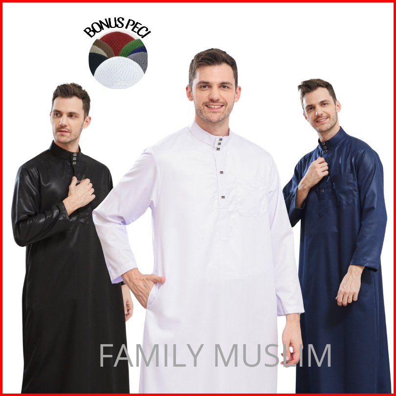 Family Muslim - Jubah Gamis Pria Dewasa Lengan Panjang Slimfit Basic Dubai - All Varian