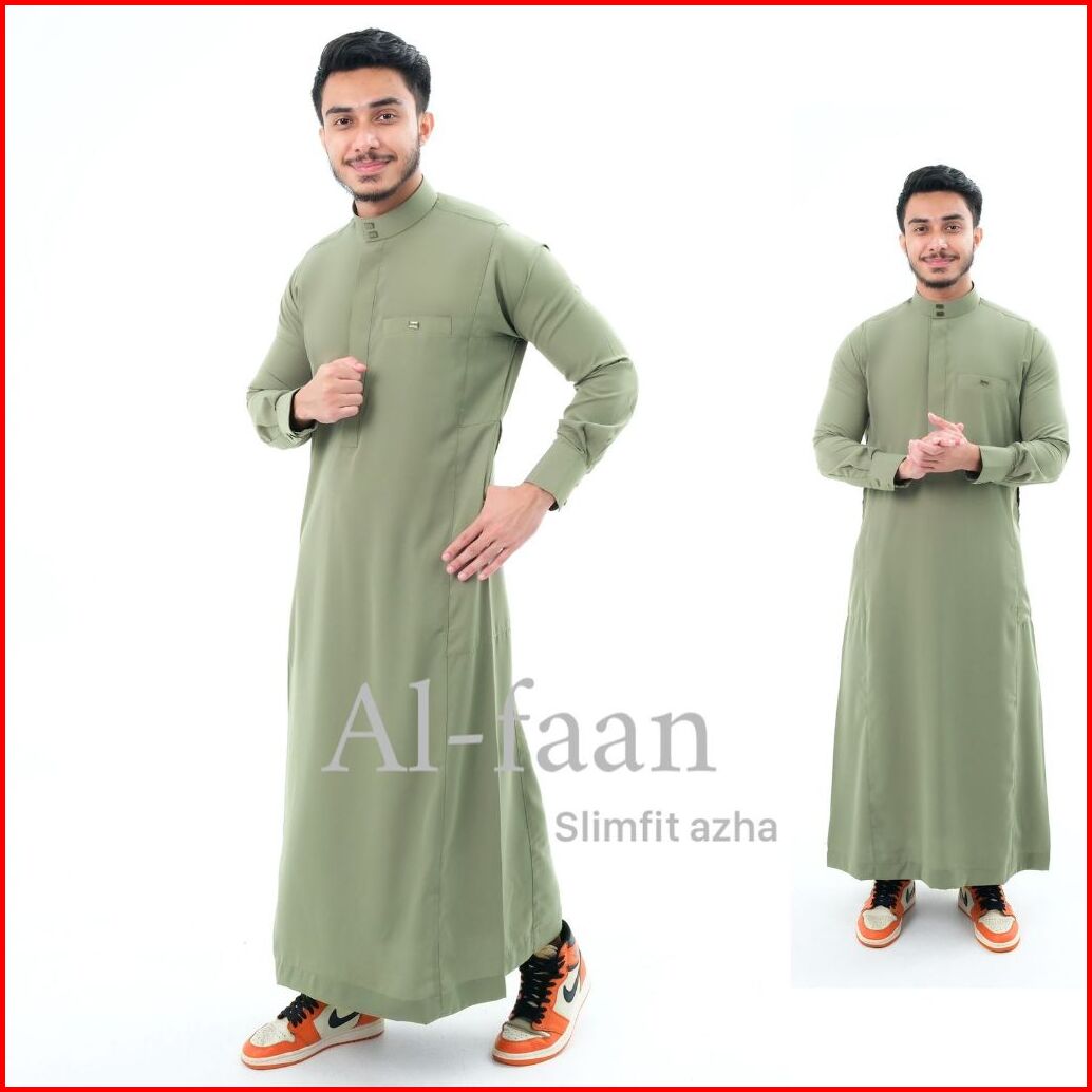 Jubah Slimfit Azha Jubah Gamis Pria Muslim Jubbah Thobe Busana Muslim Kurta Jubah Alfaan Alzan