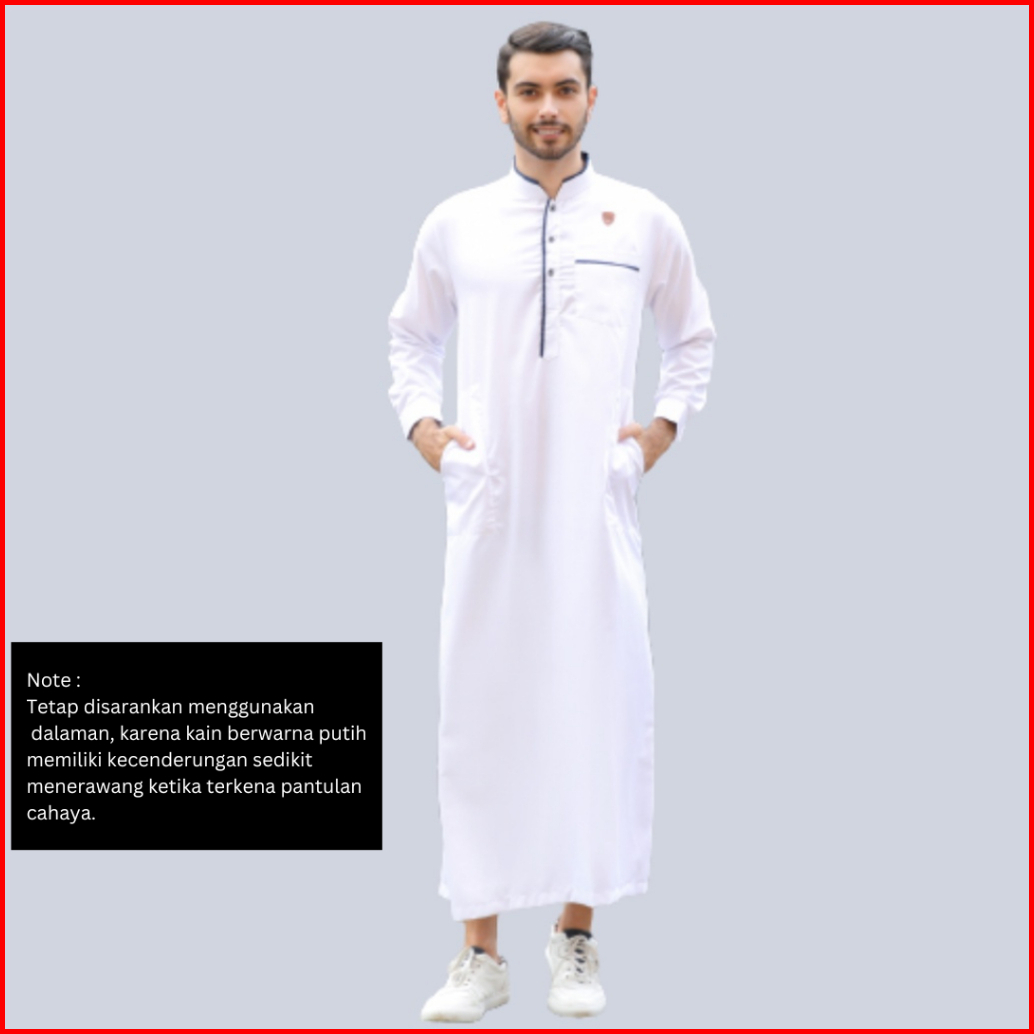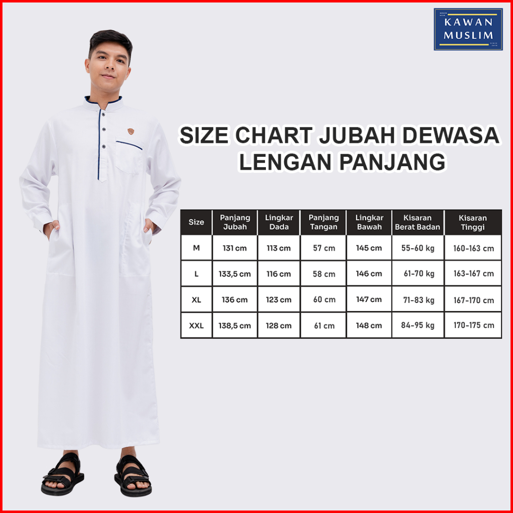 Kawan Muslim - Jubah Gamis Pria Lengan Panjang Ukuran M L Xl Bahan Katun Deluxe Series Adem Putih