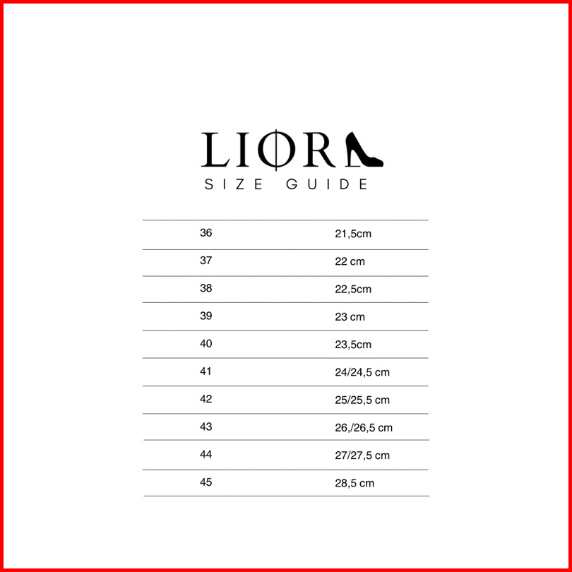 36, 37, 38, 39, 40, 41 (24,5cm), 42 (25/25,5cm), 43 (26/26,5cm), 44 (27/27,5cm), 45 (28/28,5cm)