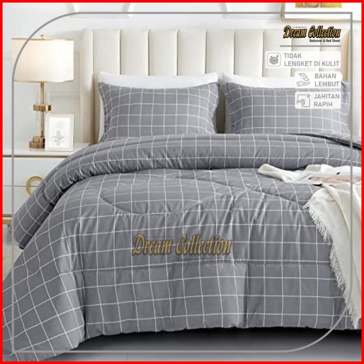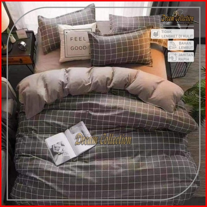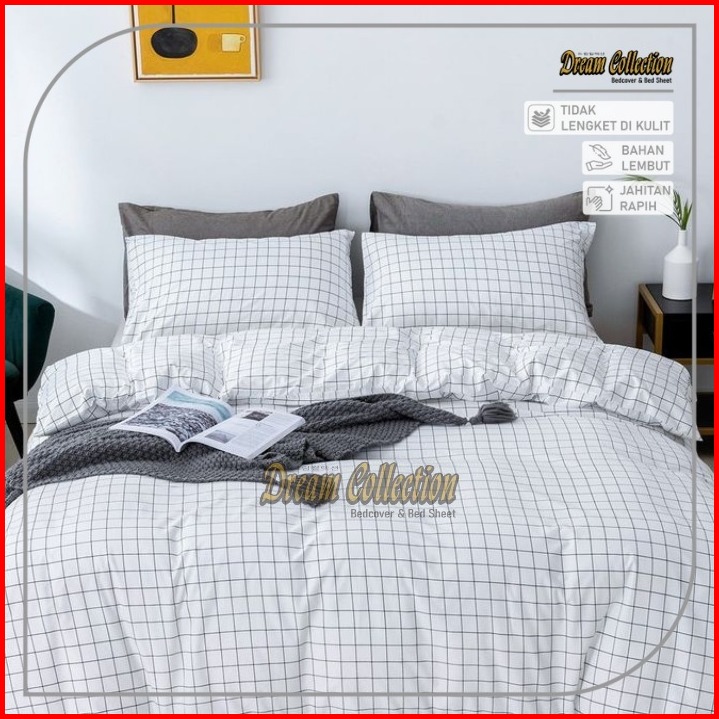 Bedcover Set Bedcover Sprei Aesthetic Minimalis Kotak Kotak Bahan Katun Premium.