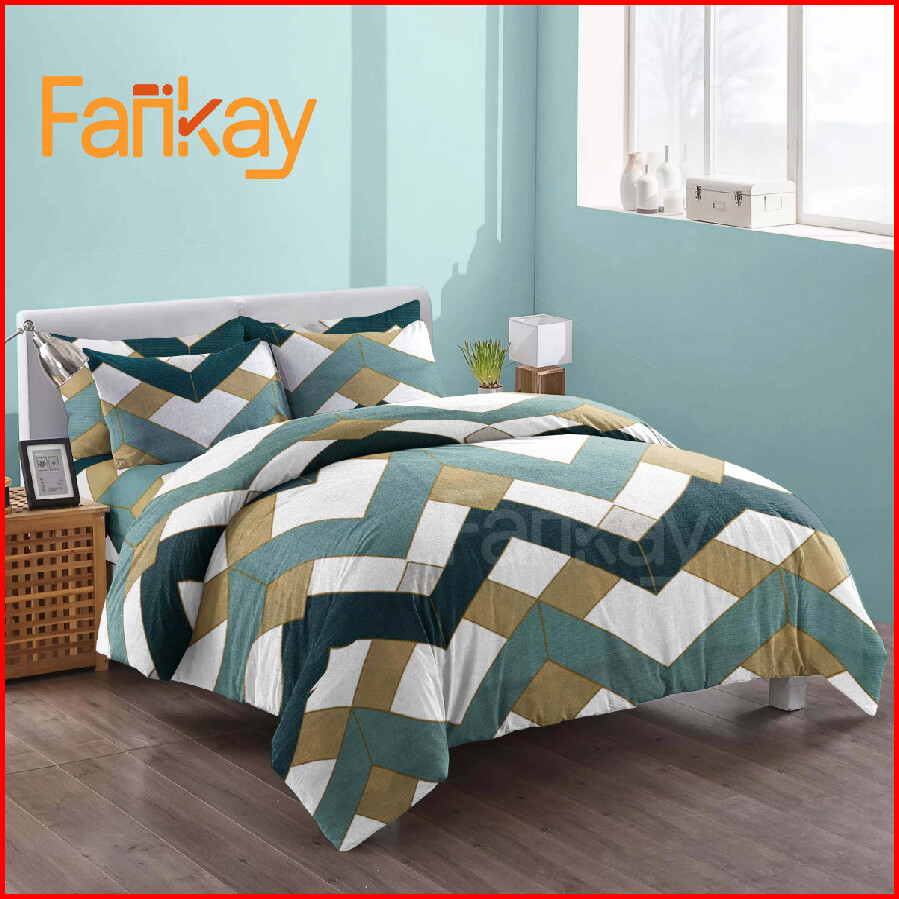 Bed Cover Set Sprei Triangle Green - Ukuran Lengkap 90x200 - 200x200 - Fankay