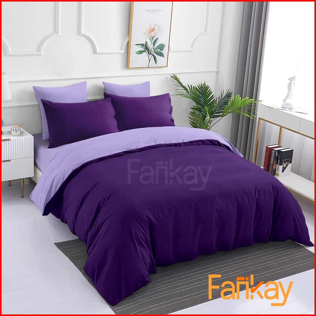 Bed Cover Set Twotone Purple Lilac - Ukuran 180x200 160x200 200x200 - Fankay Bedcover