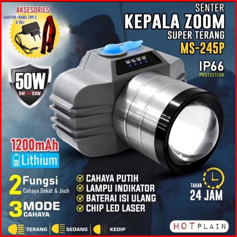 Senter Kepala Zoom Recharge White Laser Super Terang