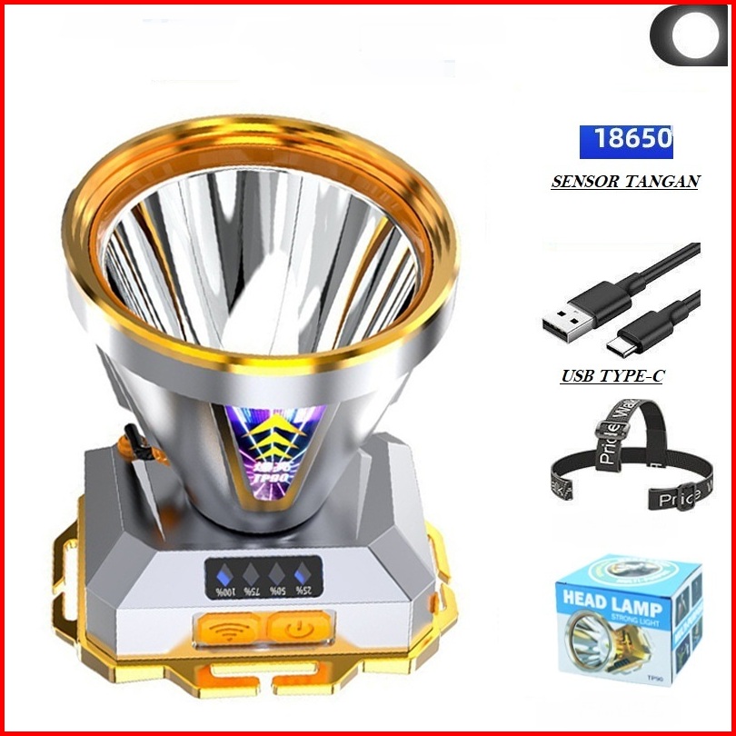 Senter Kepala Led 90w Tp90 - Super Terang - Jarak Jauh - Sensor - Bisa Pb - Type-c - Tahan Lama