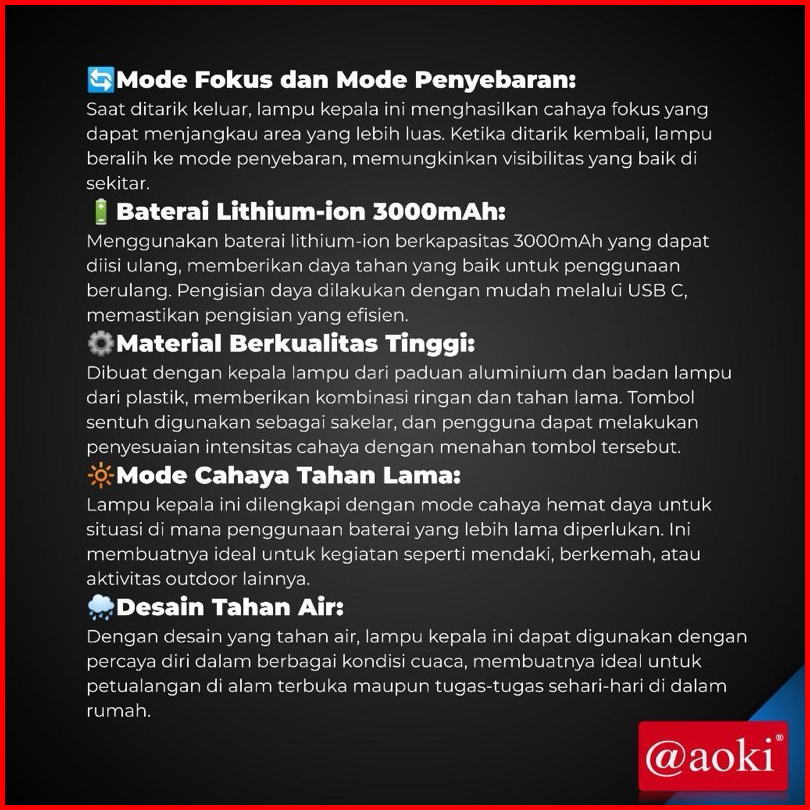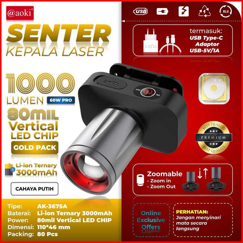 Aoki Senter Kepala Led Zoom Ak-3685q Ak-3672k 3695a Aoki