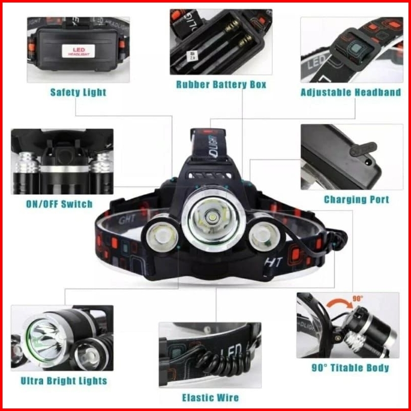 Xm-l T6 Senter Kepala 3 Lampu Led New Brand Headlamp Xml