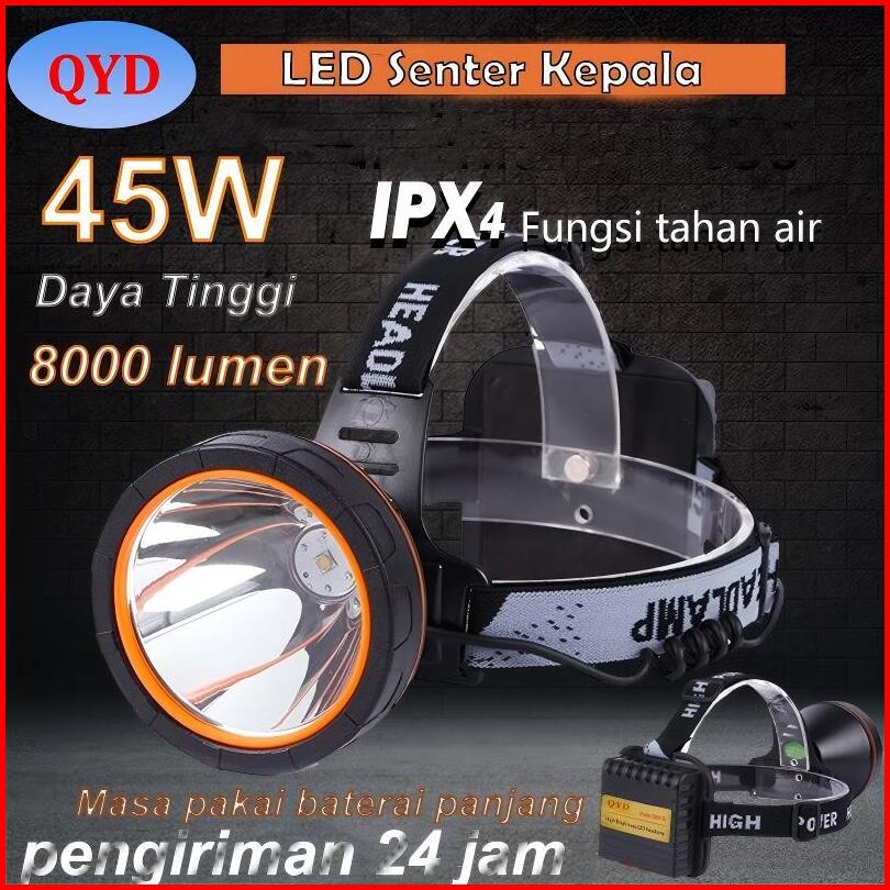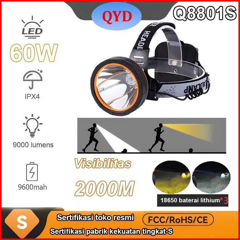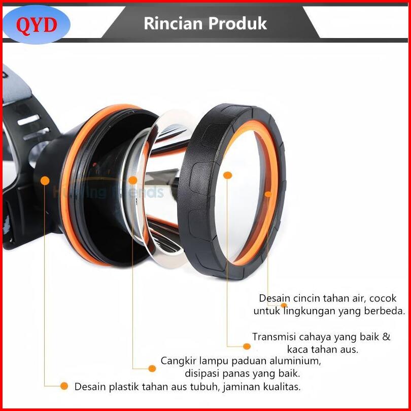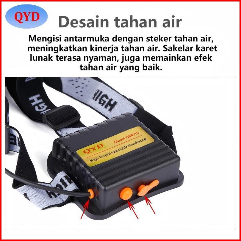 Qyd Senter Kepala Semi-split Led Super Terang Ipx4 Tahan Air Kompartemen Baterai Belakang Headlamp Q8801s