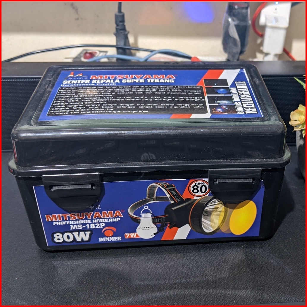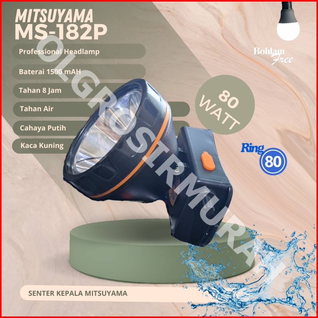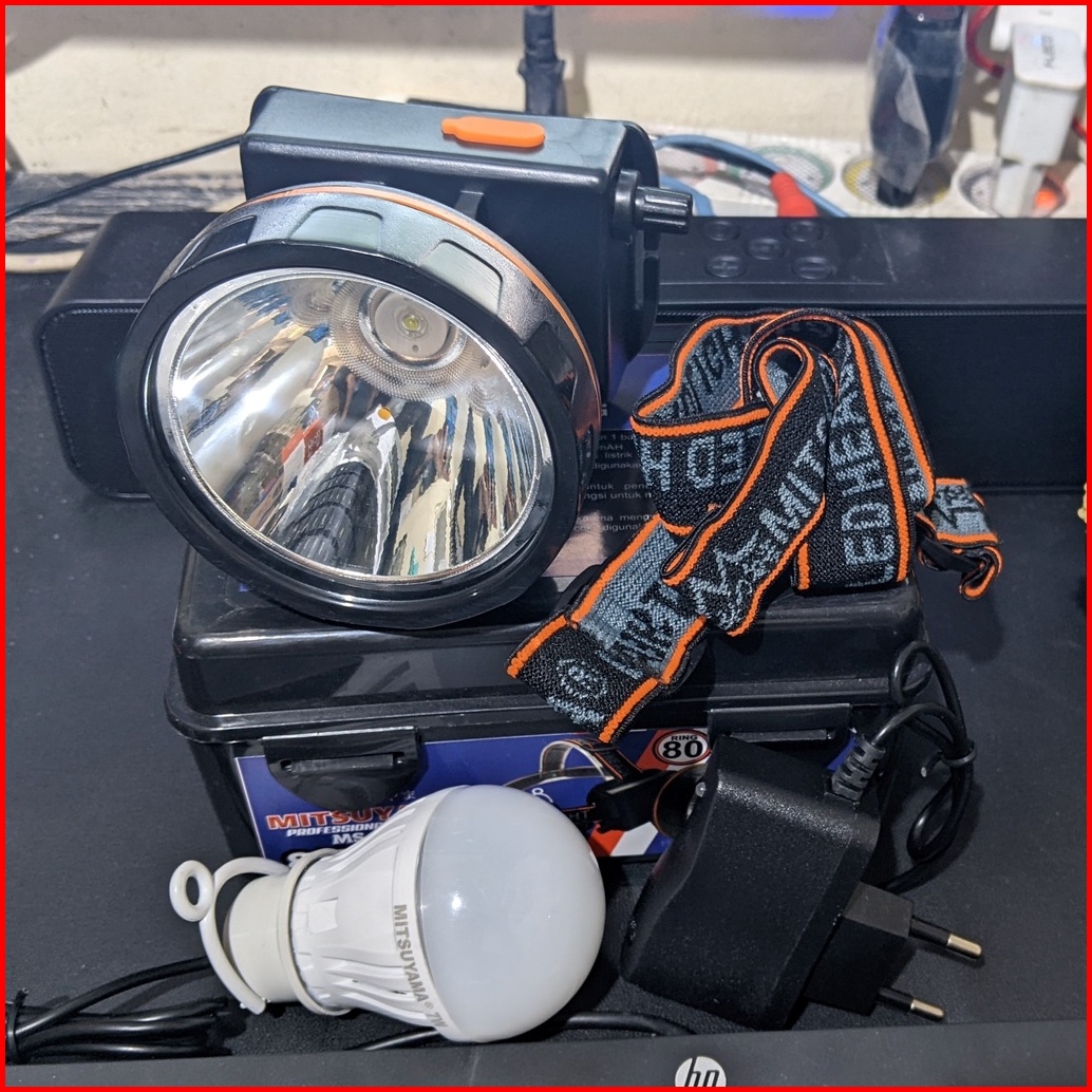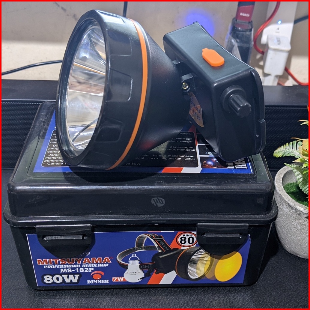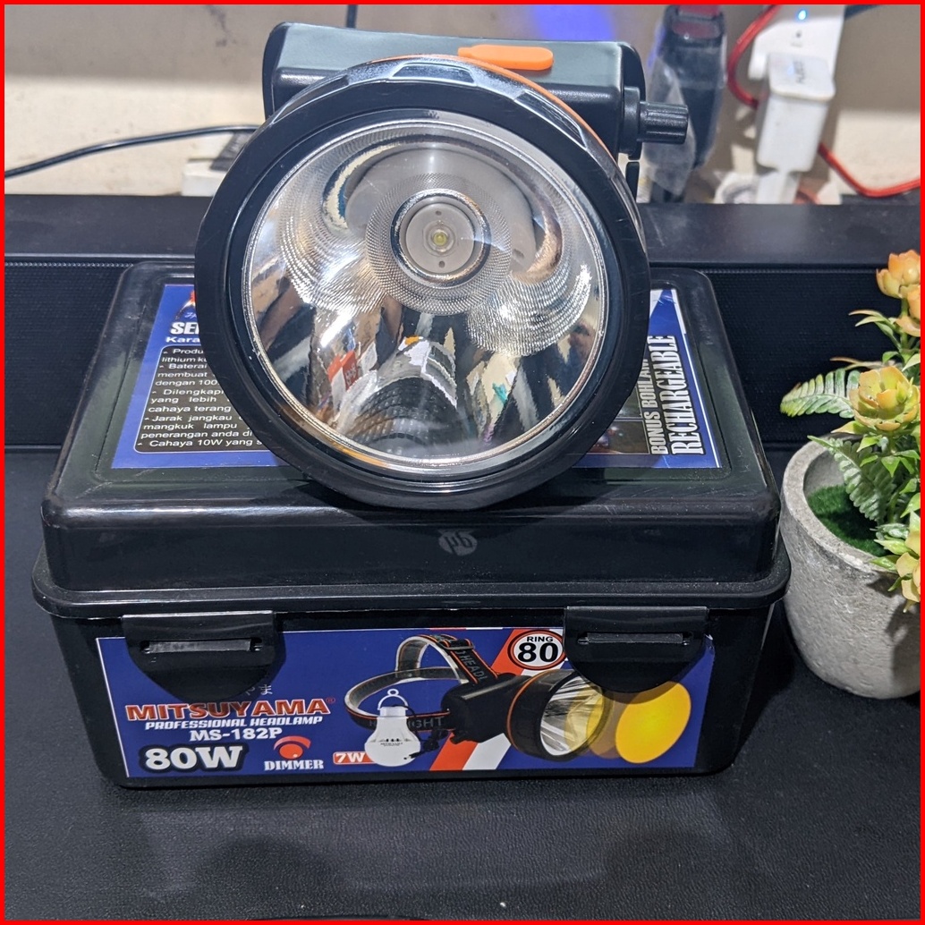 Senter Kepala Dimmer Super Terang Mitsuyama 80 Watt Ms-182p Cahaya Putih Ada Lensa Kuning Free Bohlam Led 7watt