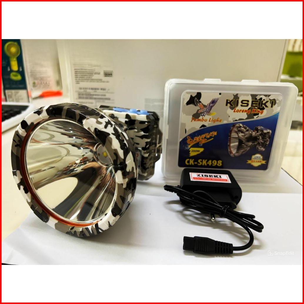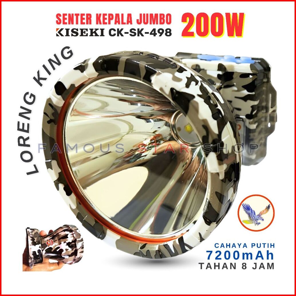 Senter Kepala 200 Watt Kiseki Ck-sk498 Loreng King Jumbo Light Tahan 8 Jam Nonstop Senter Kepala Jumbo 200 Watt Senter K