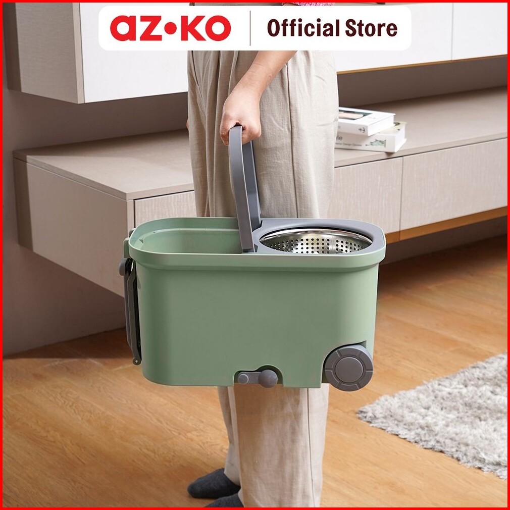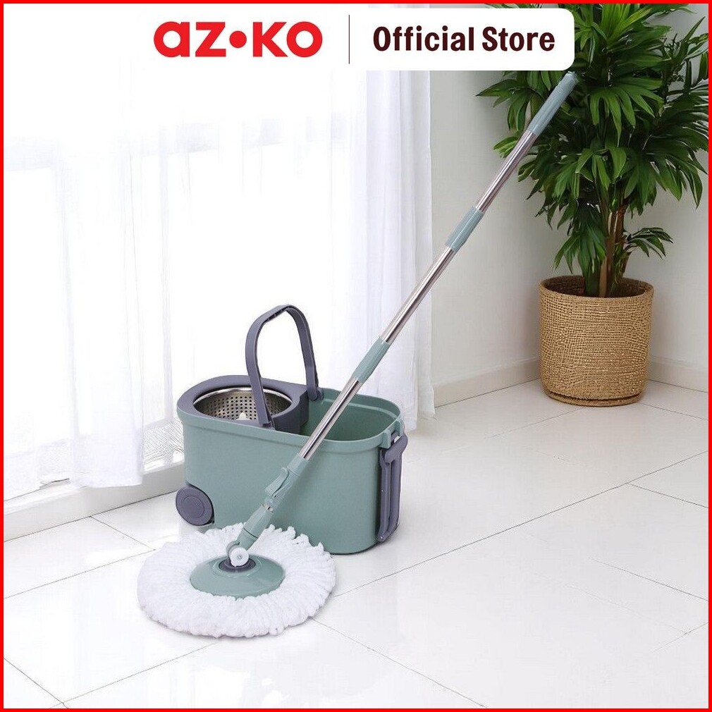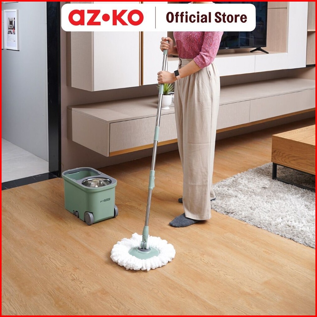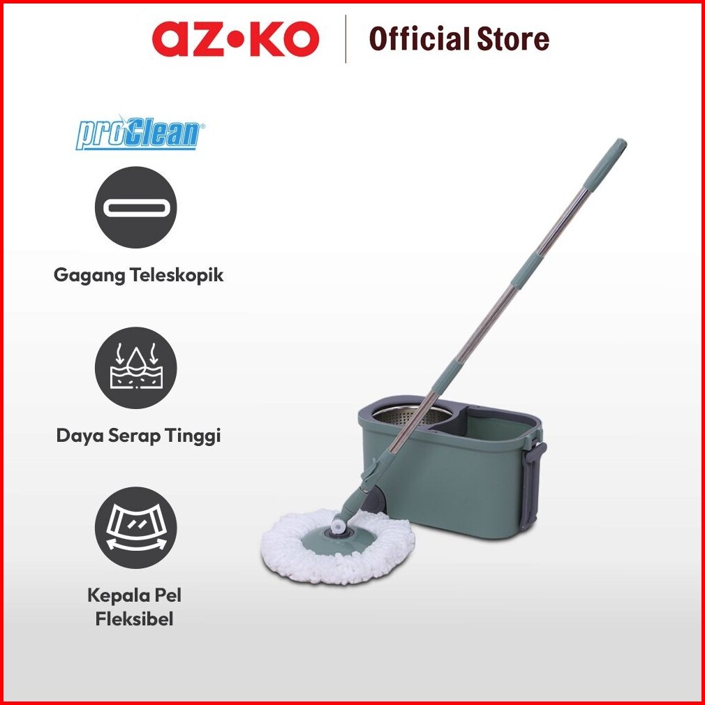 Azko Proclean Set Alat Pel Putar Dengan Ember Peras Roda - Hijau Mop Bucket Set Perabotan Rumah Alat Pembersih Lantai Cl