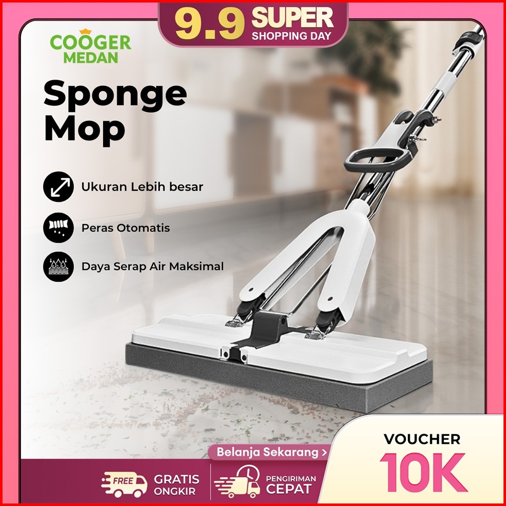 Cooger Medan Alat Pel Lantai Besar Spons Busa Dengan Peras Otomatis Pel Jumbo Sponge Mop Wet And Dry