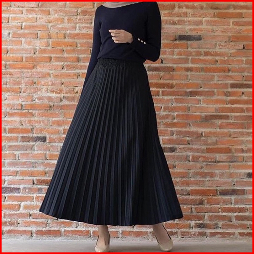 Rok Plisket Premium Bahan Hyget Super Pinggang Full Karet